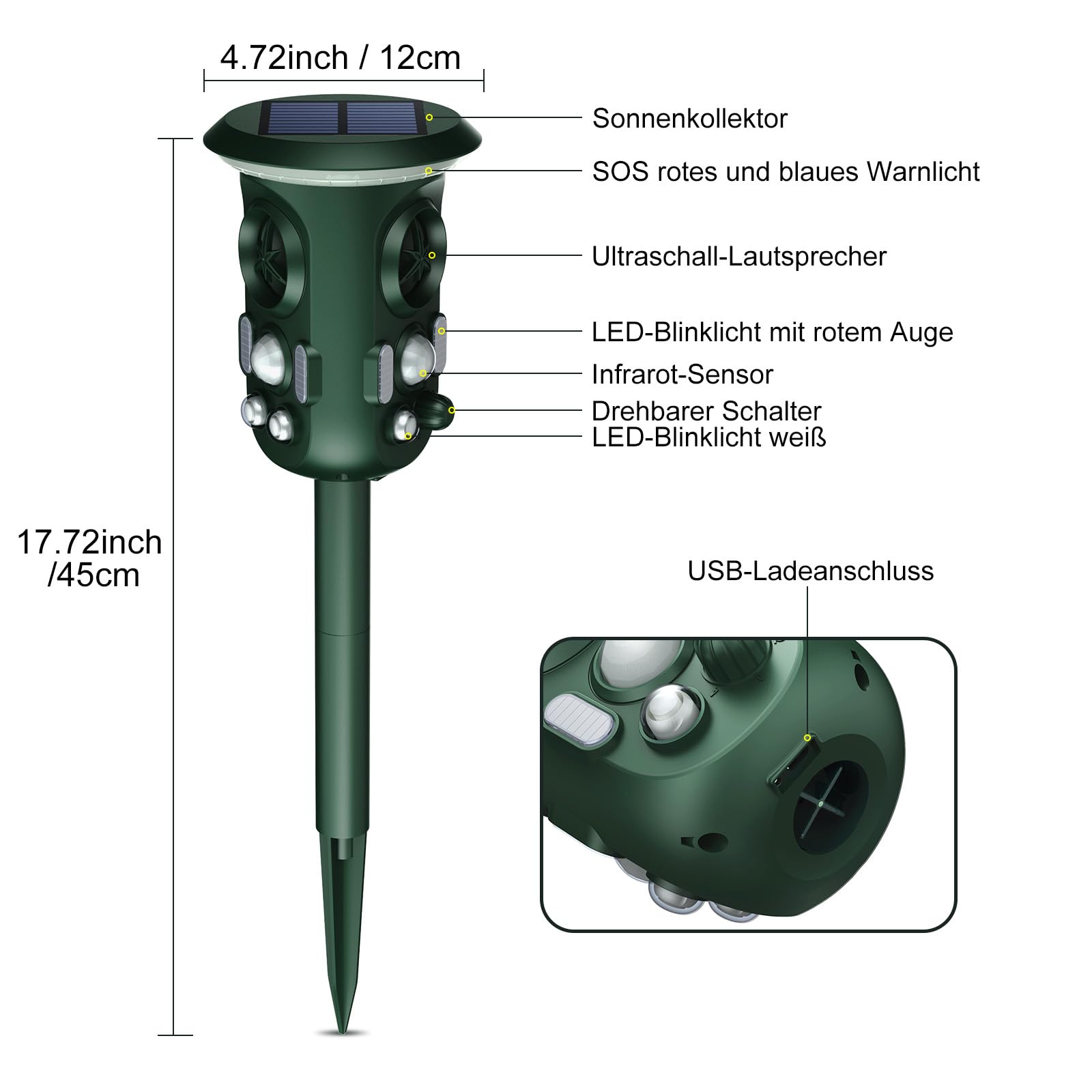 Mit diesem vielseitigen und robusten Gerät erhalten Sie eine zuverlässige und humane Lösung, um Ihren Aussenbereich dauerhaft vor unerwünschten Tieren zu schützen.