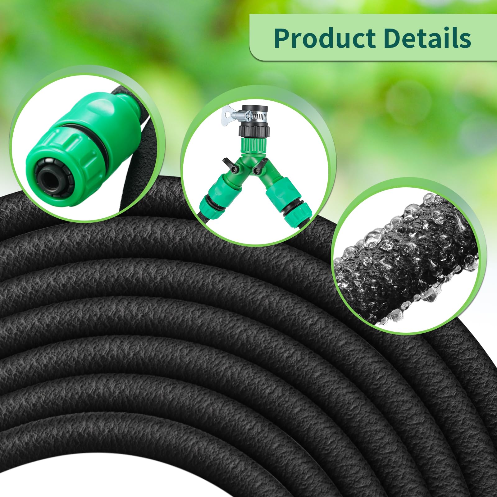 Der Schlauch ist aus robustem und langlebigem Recycling-Gummi gefertigt. Dieses Material ist hochelastisch und beständig gegen Risse, Wasseraustritt und Oxidation, was eine lange Lebensdauer in Ihrem Garten garantiert.