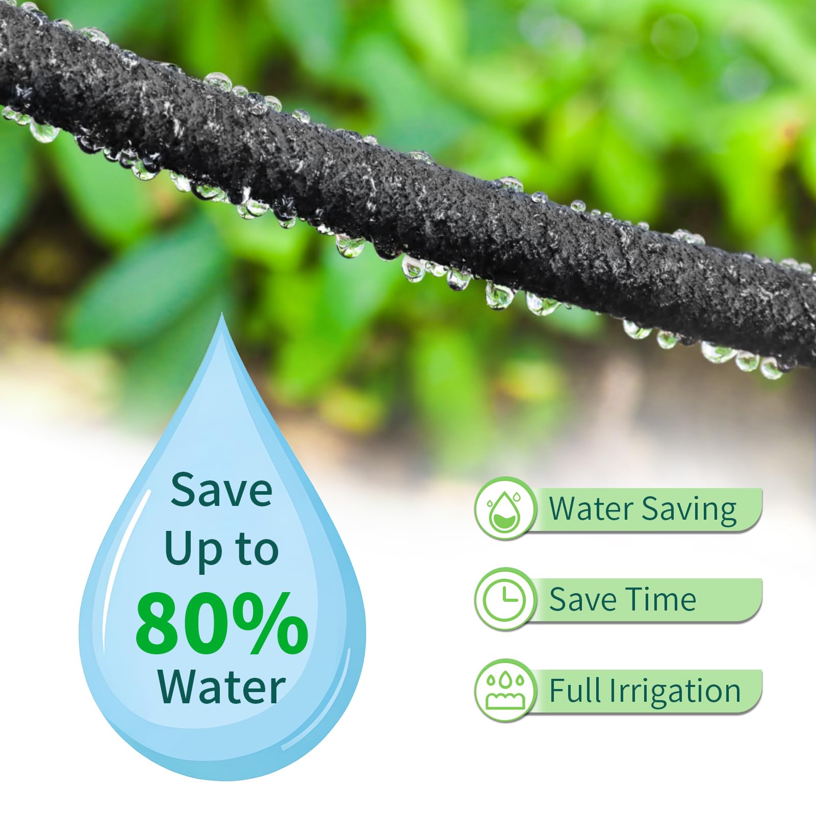 Das Set spart bis zu 80% Wasser im Vergleich zu herkömmlichen Sprinklern. Durch das Mikroloch-Design wird das Wasser langsam und direkt an die Wurzeln abgegeben, was die Verdunstung minimiert. Das schont nicht nur die Umwelt, sondern senkt auch Ihre Wasserkosten erheblich.