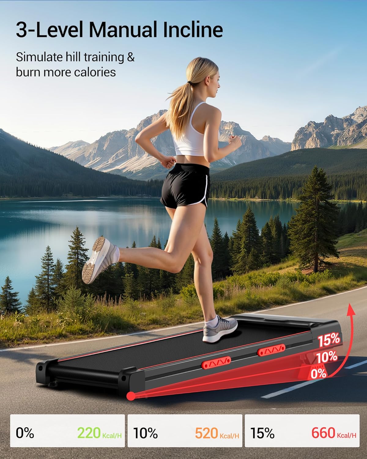 - Anspruchsvolle 9 % Steigung: Simuliert ein realistisches Berglauftraining für eine erhöhte Intensität und Kalorienverbrennung.