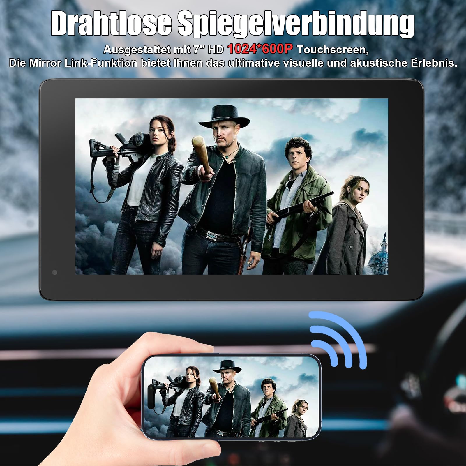 - Entertainment an Bord: Drahtlose Bildschirmspiegelung (Wireless Mirroring) für Apple- und Android-Geräte.