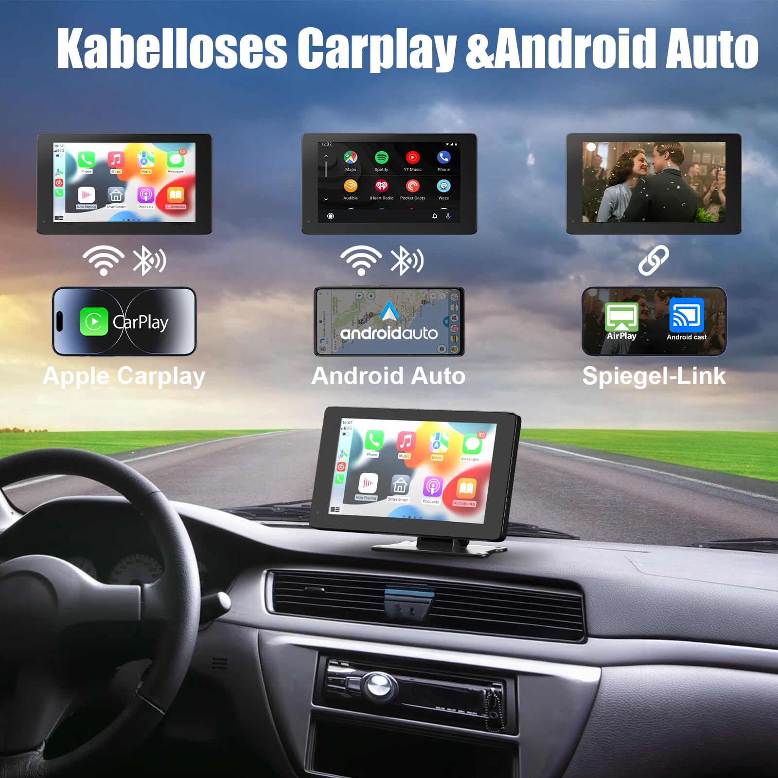 - Nahtlose Smartphone-Integration: Kabellose Unterstützung für Apple CarPlay und Android Auto.