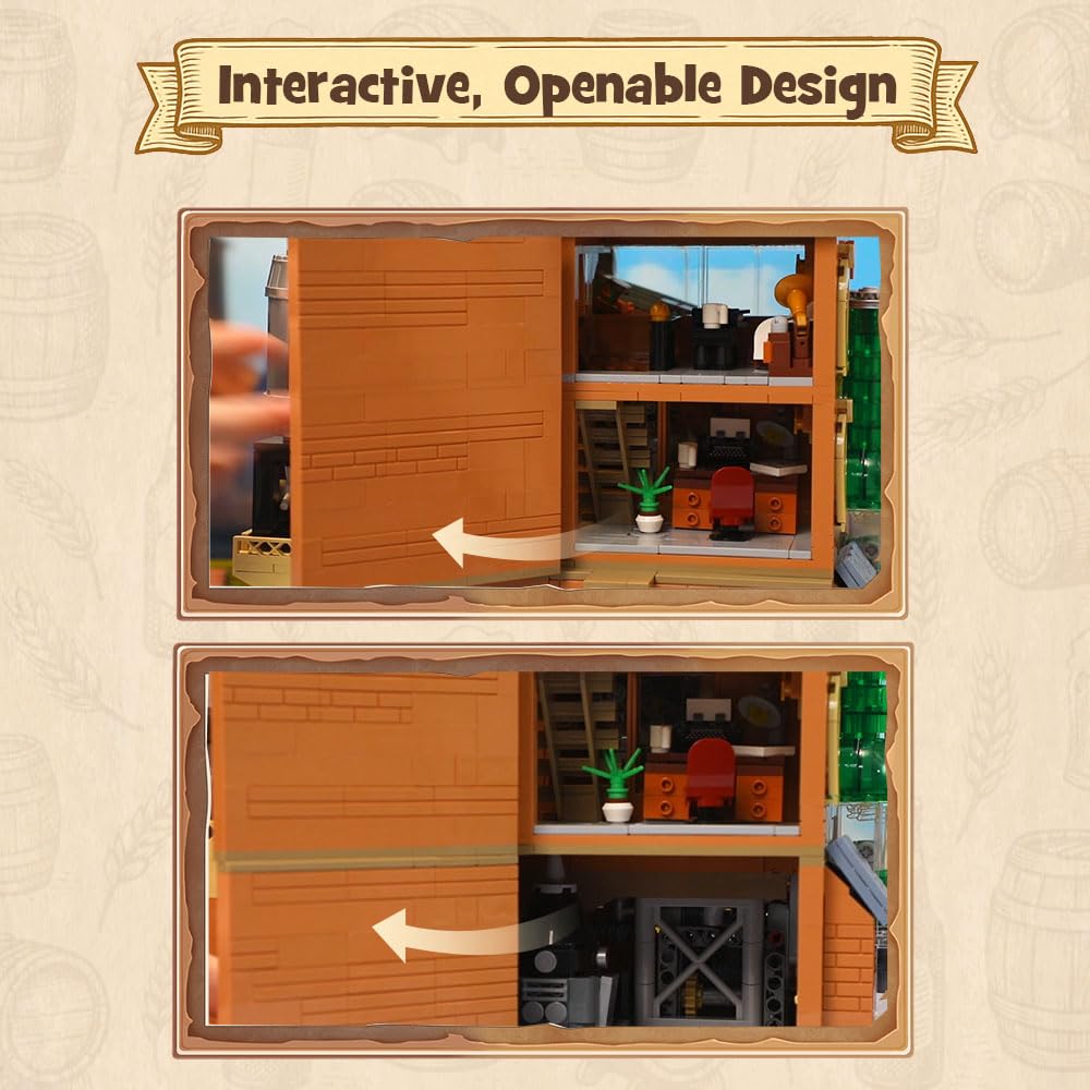 - Besonderer Einblick ins Innere: Die Rückwand der Brauerei lässt sich komplett aufklappen und gibt den Blick auf das detailreiche Innenleben frei. Zudem können Fensterläden und Seitentüren geöffnet werden, was für zusätzlichen Spielwert sorgt.