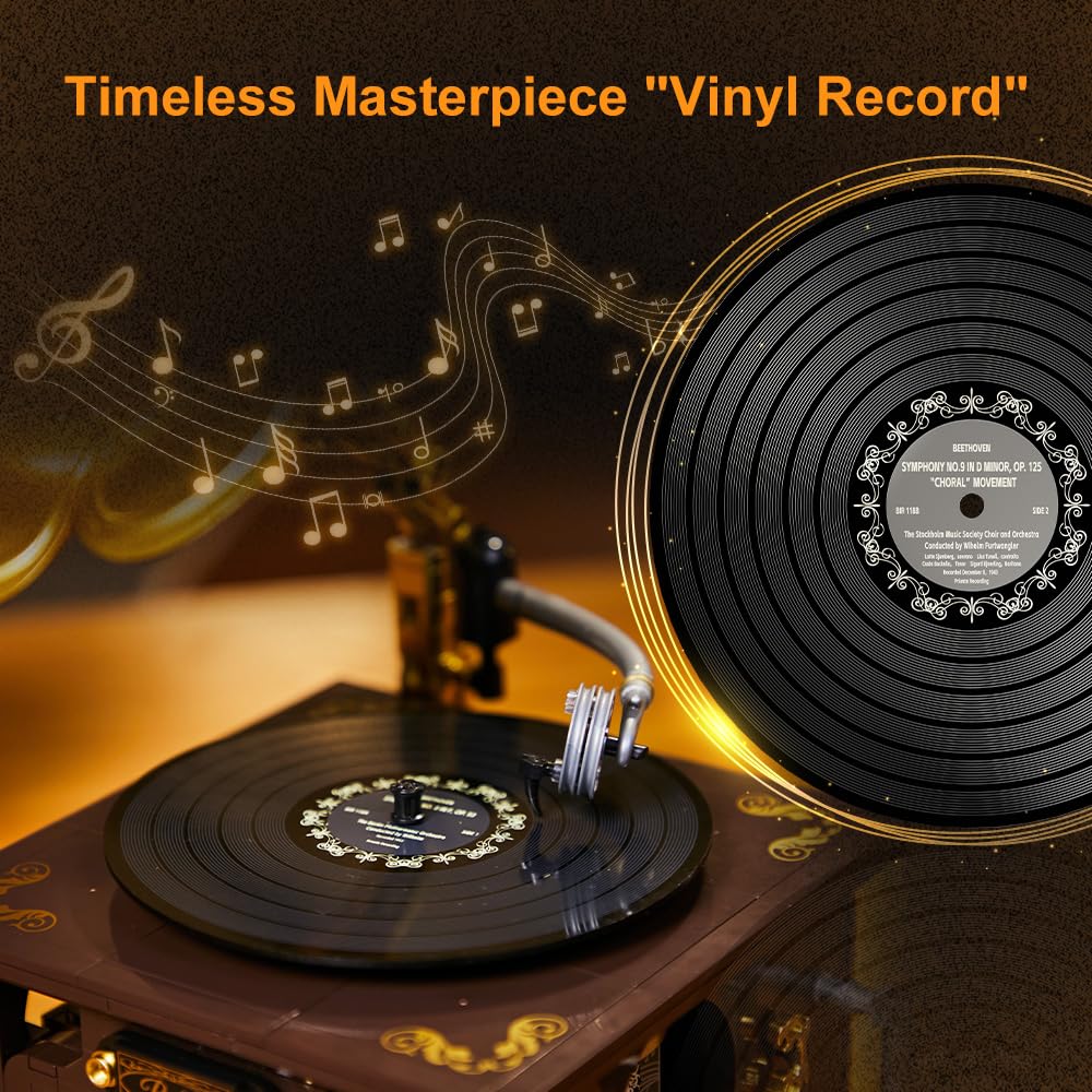 Dieses Bauset ist mehr als nur ein Modell. Es ist eine interaktive Zeitreise, die Ihnen die Mechanik und den Charme klassischer Musikabspielgeräte näherbringt. Die beweglichen Teile wie der Tonarm, die rotierende Platte und das Album sorgen für ein dynamisches und fesselndes Erlebnis, das weit über das reine Zusammenbauen hinausgeht.