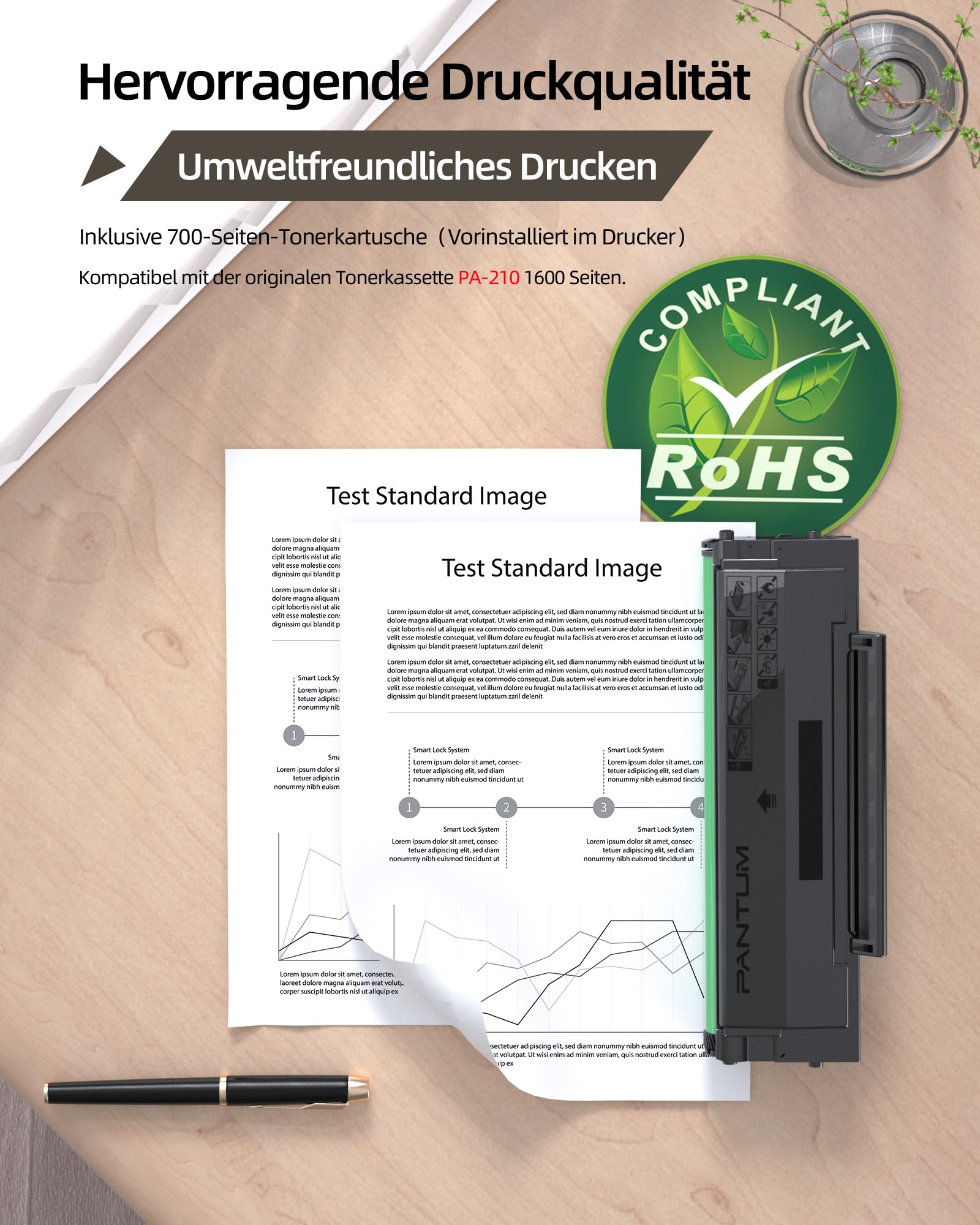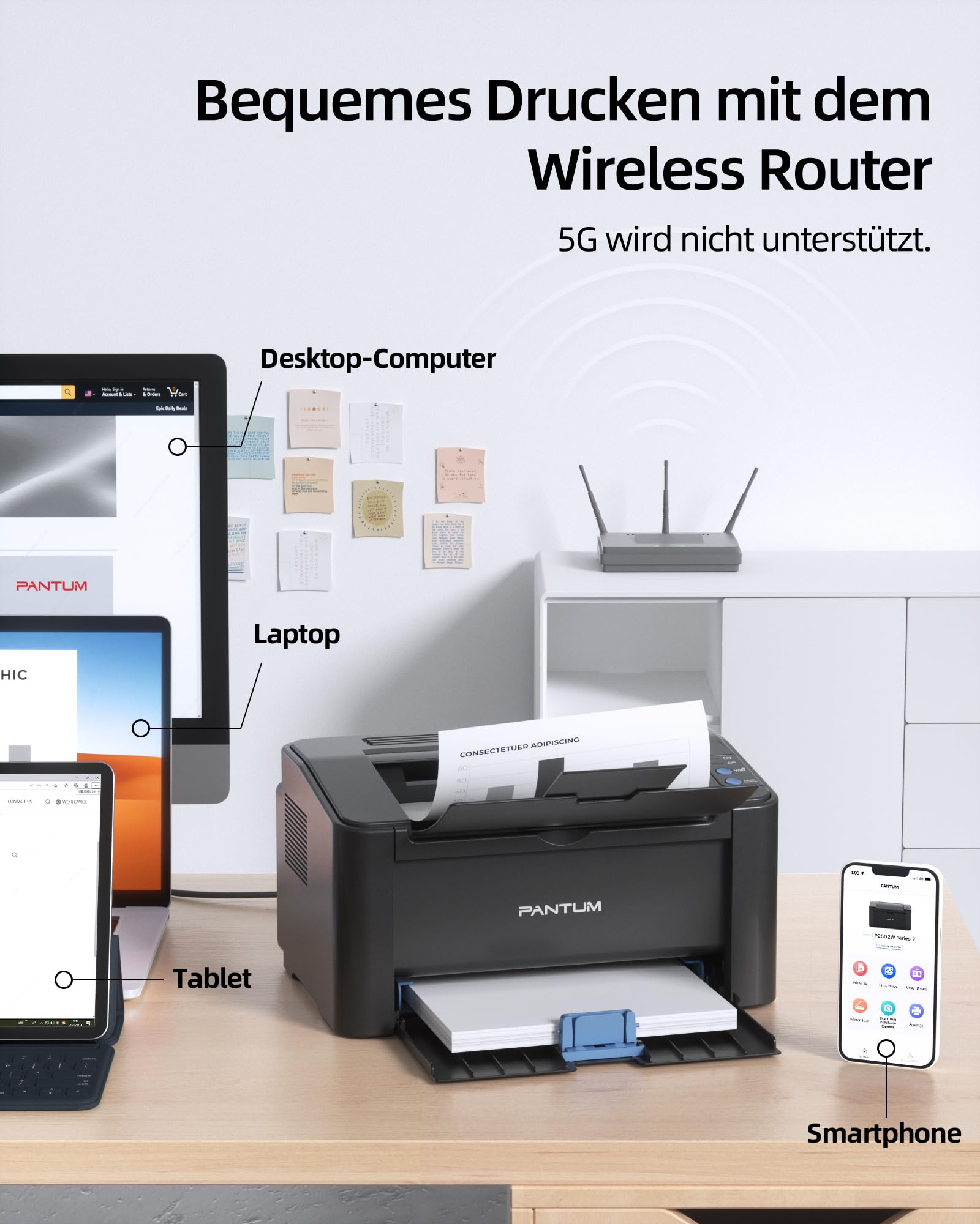 - Kabellose Konnektivität: Integriertes WLAN für bequemes Drucken im Netzwerk und einfache Steuerung via PANTUM-App auf Mobilgeräten.