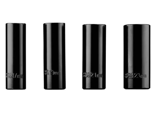 Der Akku-Schlagschrauber wird in einem praktischen Transportkoffer geliefert. Im Lieferumfang sind ausserdem vier gängige Steckschlüssel in den Grössen 17 mm, 19 mm, 21 mm und 23 mm enthalten.