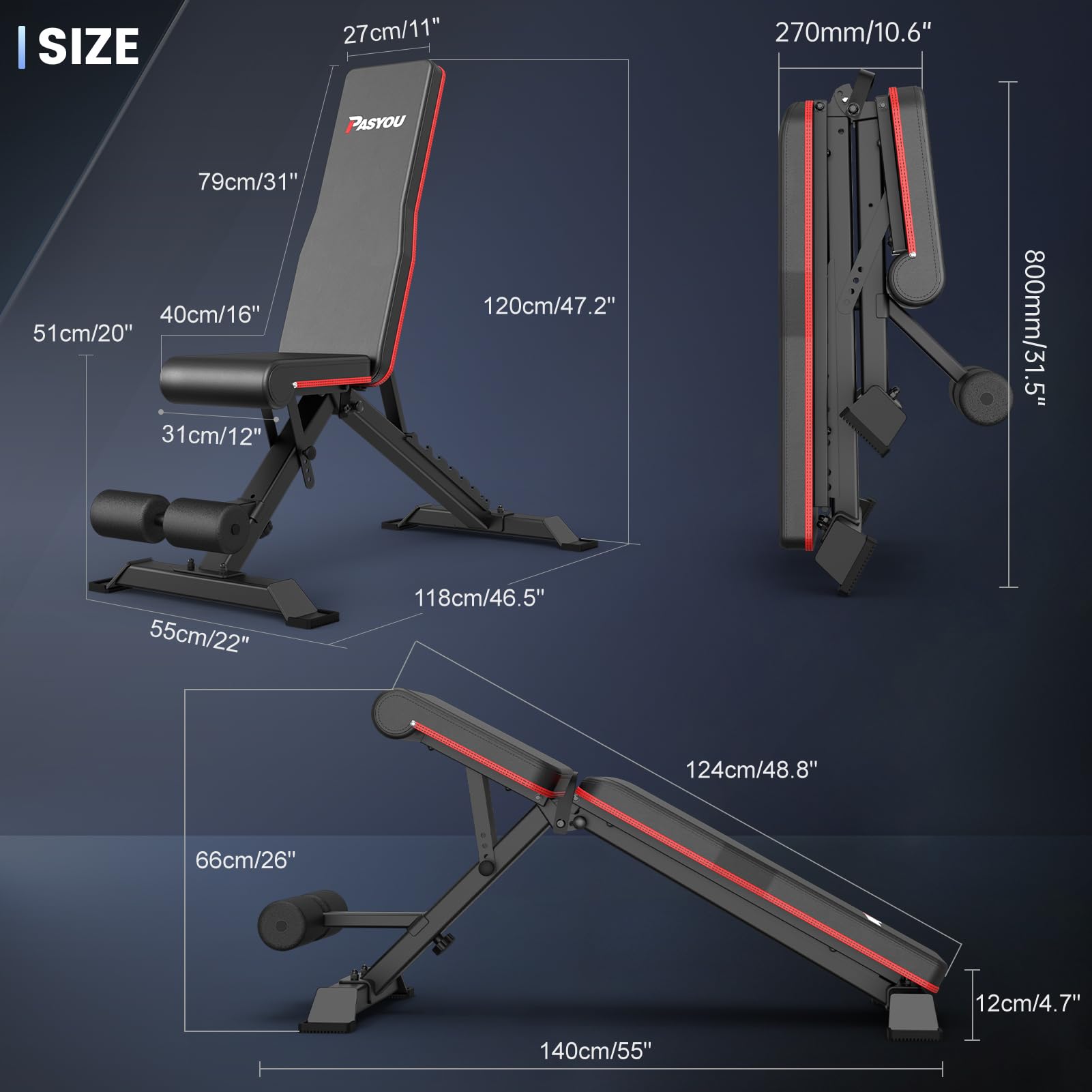 - Maximale Belastbarkeit von 318 kg: Dank einer robusten Konstruktion aus verdicktem Stahl und einer einzigartigen doppelten Dreiecksstruktur bietet diese Bank ausserordentliche Stabilität für anspruchsvolle Übungen.
