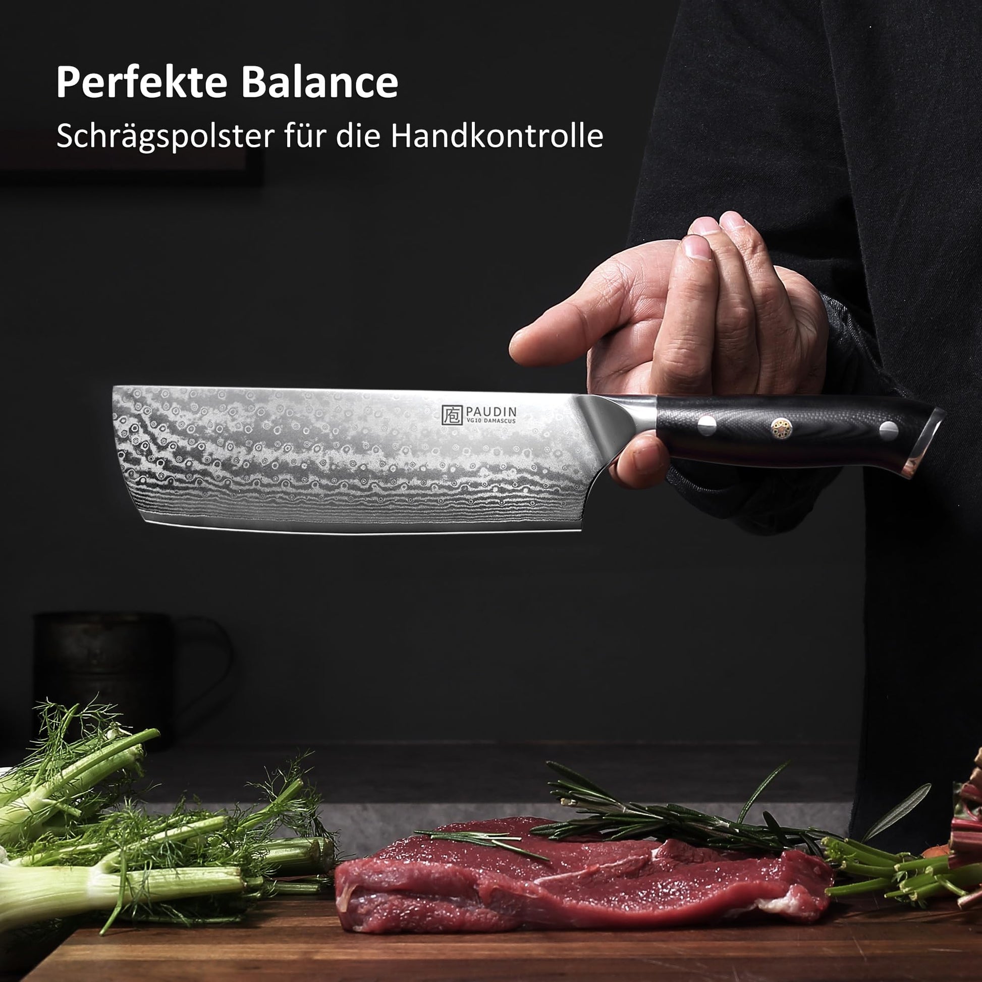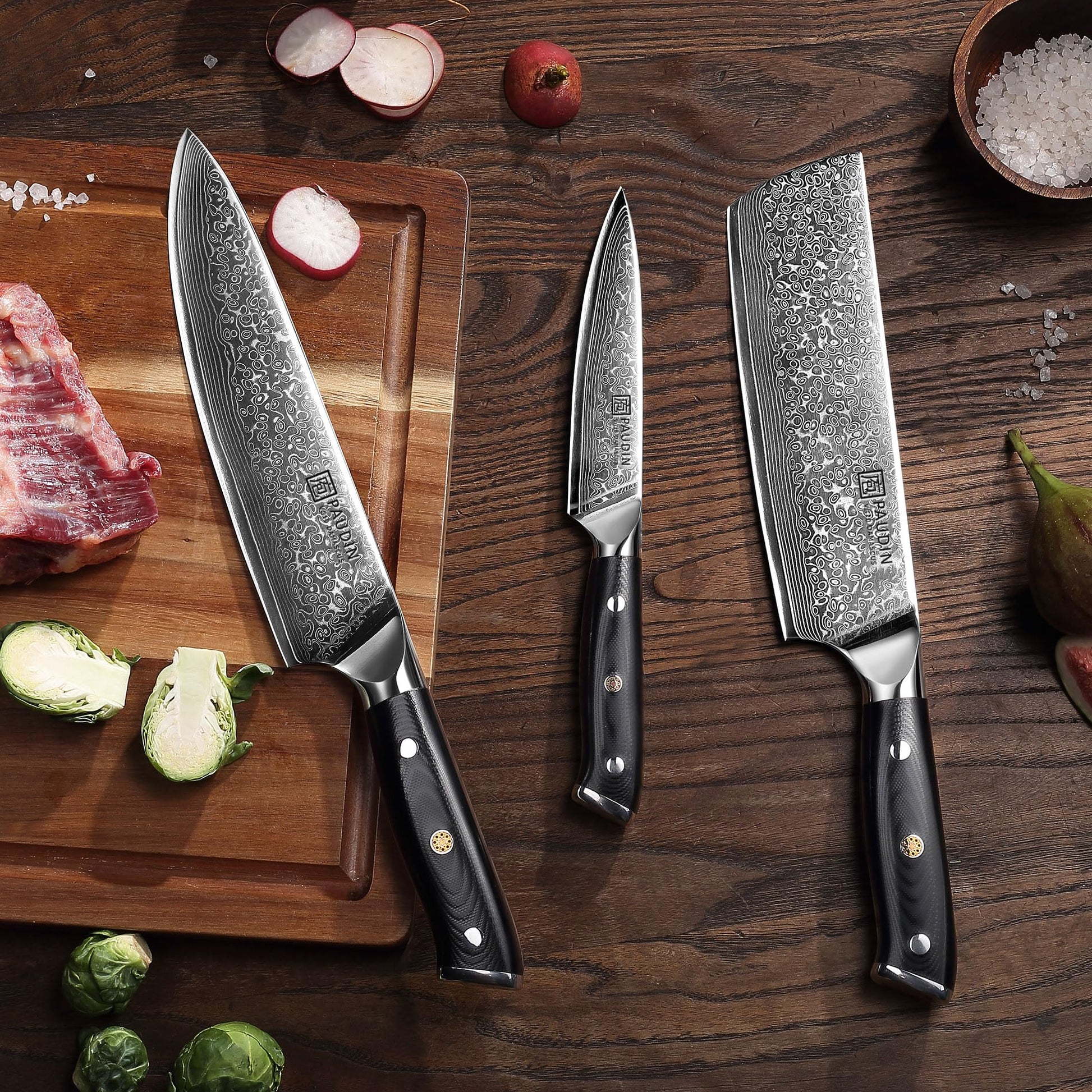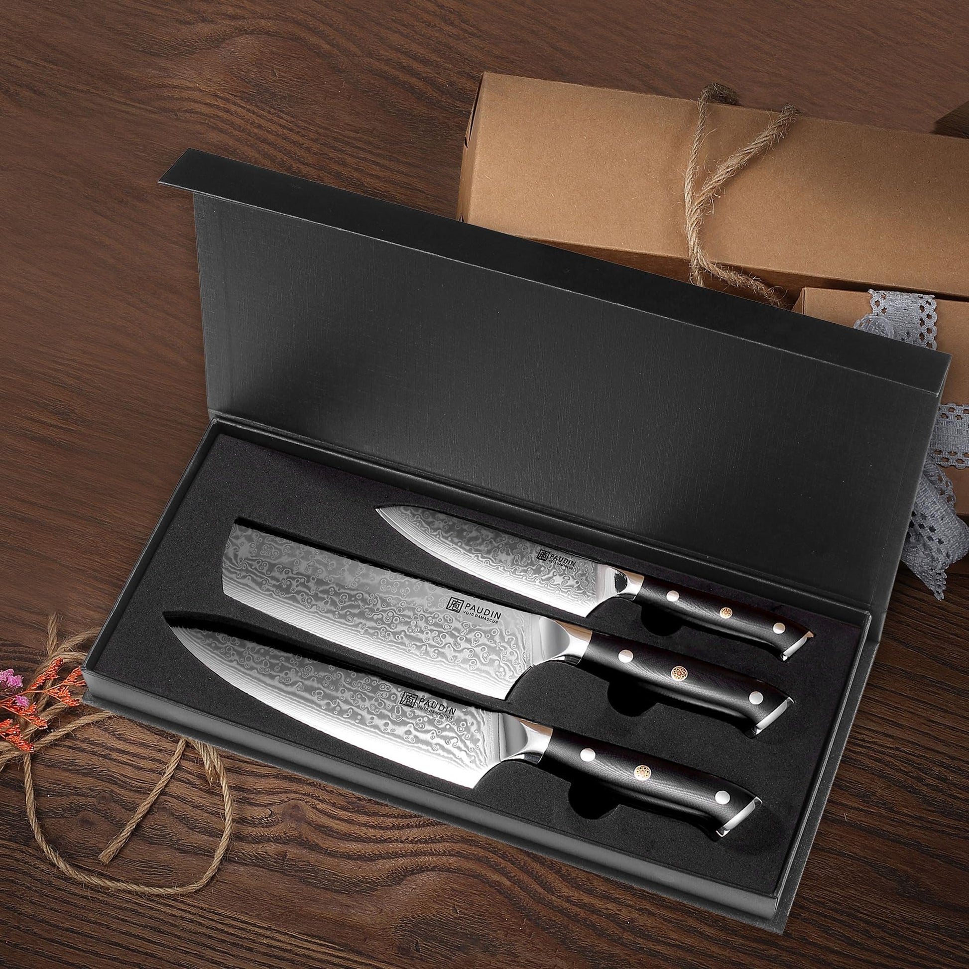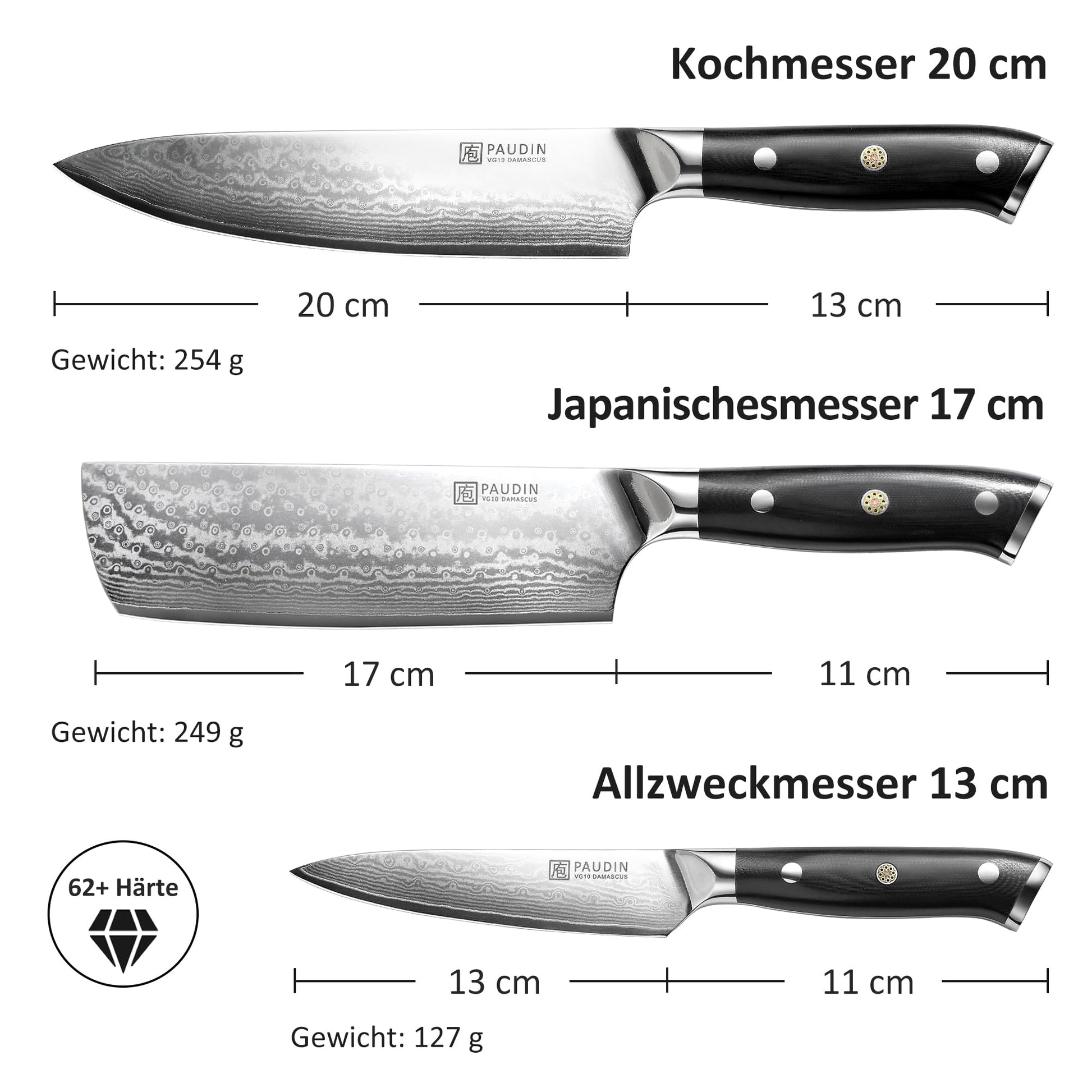 PAUDIN Damastmesser Set Küchenmesser – 3-teilig VG10 Damaststahl