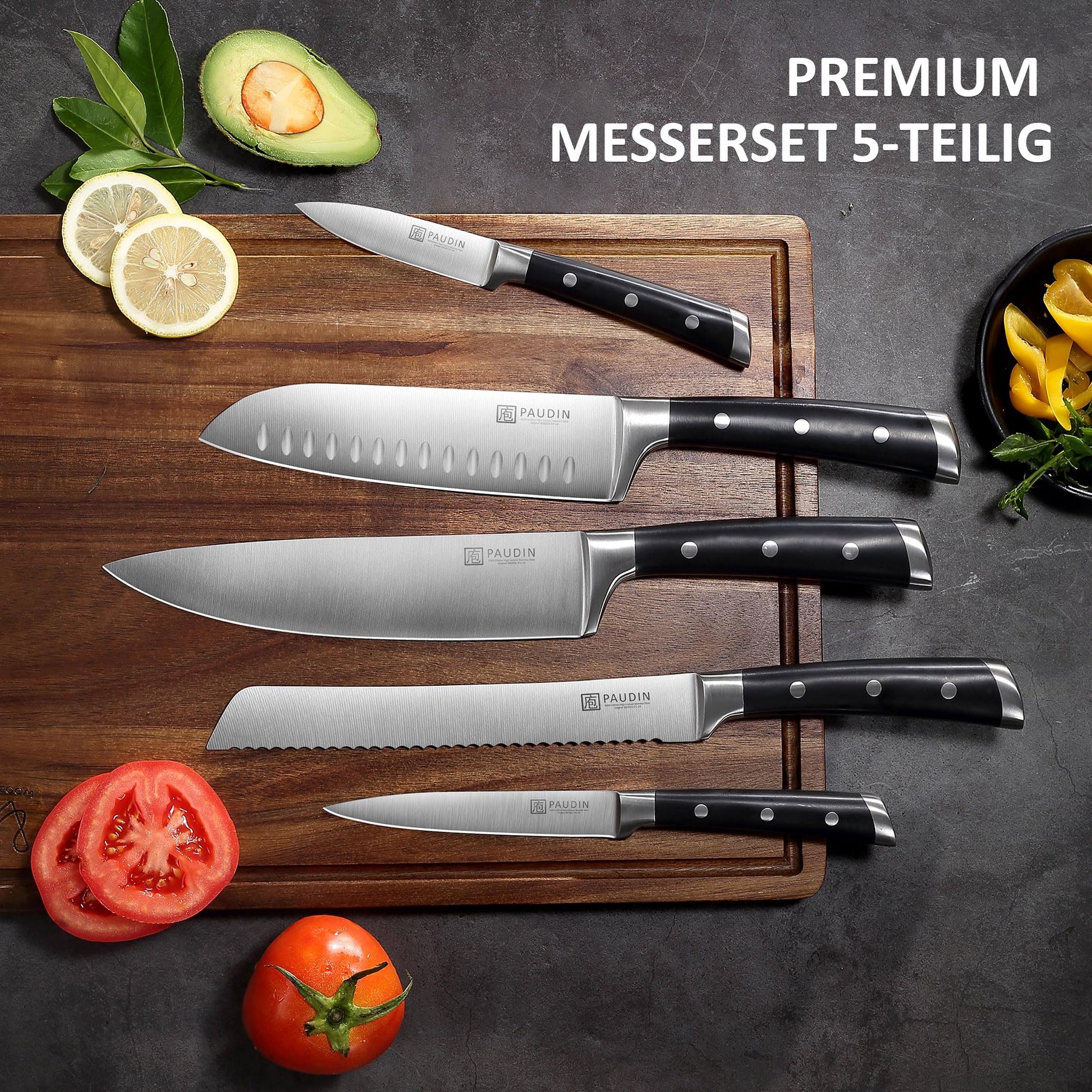 PAUDIN Messerset 5-teilig Küchenmesser - Carbon Edelstahl