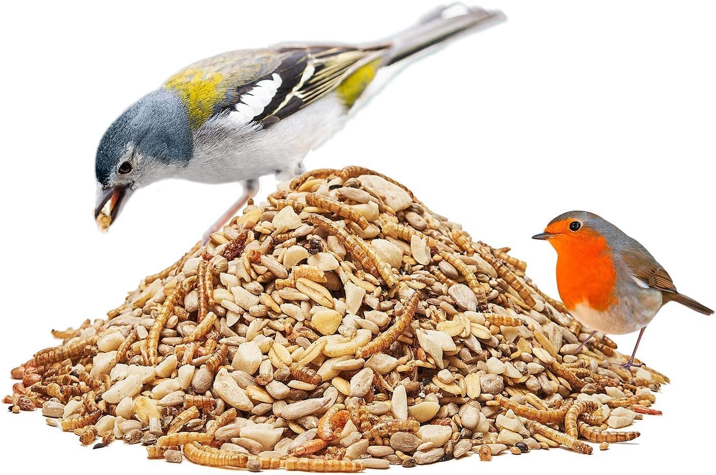 - Reichhaltige Zusammensetzung: Enthält eine vielfältige Mischung aus Sonnenblumenkernen, gehackten Nüssen, Fetthaferflocken, erlesenen Sämereien, Rosinen, Maisgrütze, Hanf sowie tierischem Protein aus getrockneten Mehlwürmern und Bachflohkrebsen.