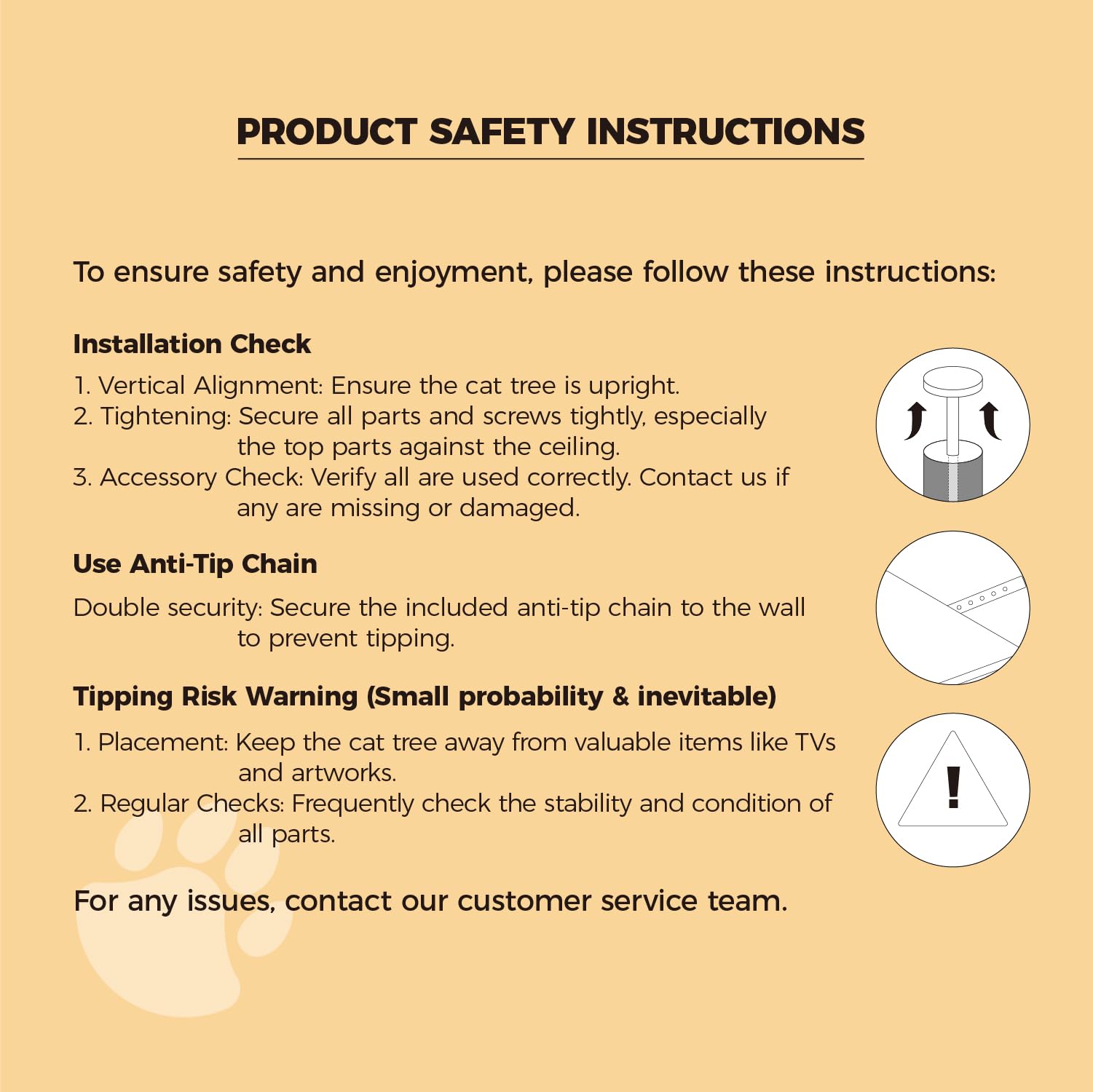 Dank der durchdachten Konstruktion steht die Sicherheit an erster Stelle. Der Kratzbaum wird zwischen Boden und Decke verspannt und kann zusätzlich mit einem Gurt an der Wand gesichert werden. So geniessen Sie und Ihre Katzen ein sorgenfreies Spielvergnügen, selbst in Haushalten mit begrenztem Platz.