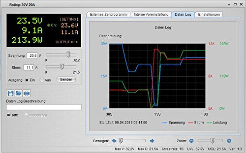 Das Gerät lässt sich vollständig über die mitgelieferte PC-Software und die USB 2.0-Schnittstelle fernsteuern. Sie können damit zeitlich programmierbare Zyklen für Spannung und Strom definieren, was es zu einem idealen Werkzeug für automatisierte Testabläufe und anspruchsvolle Industrieanwendungen macht.