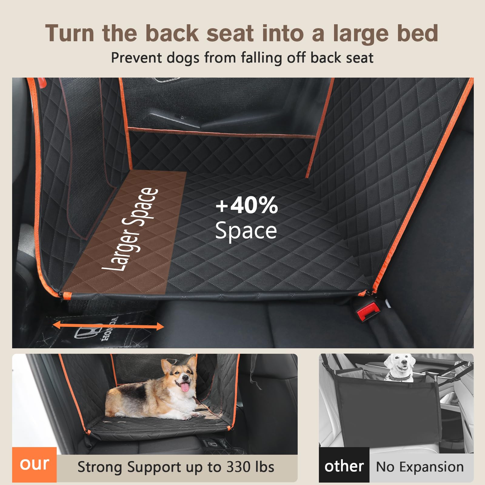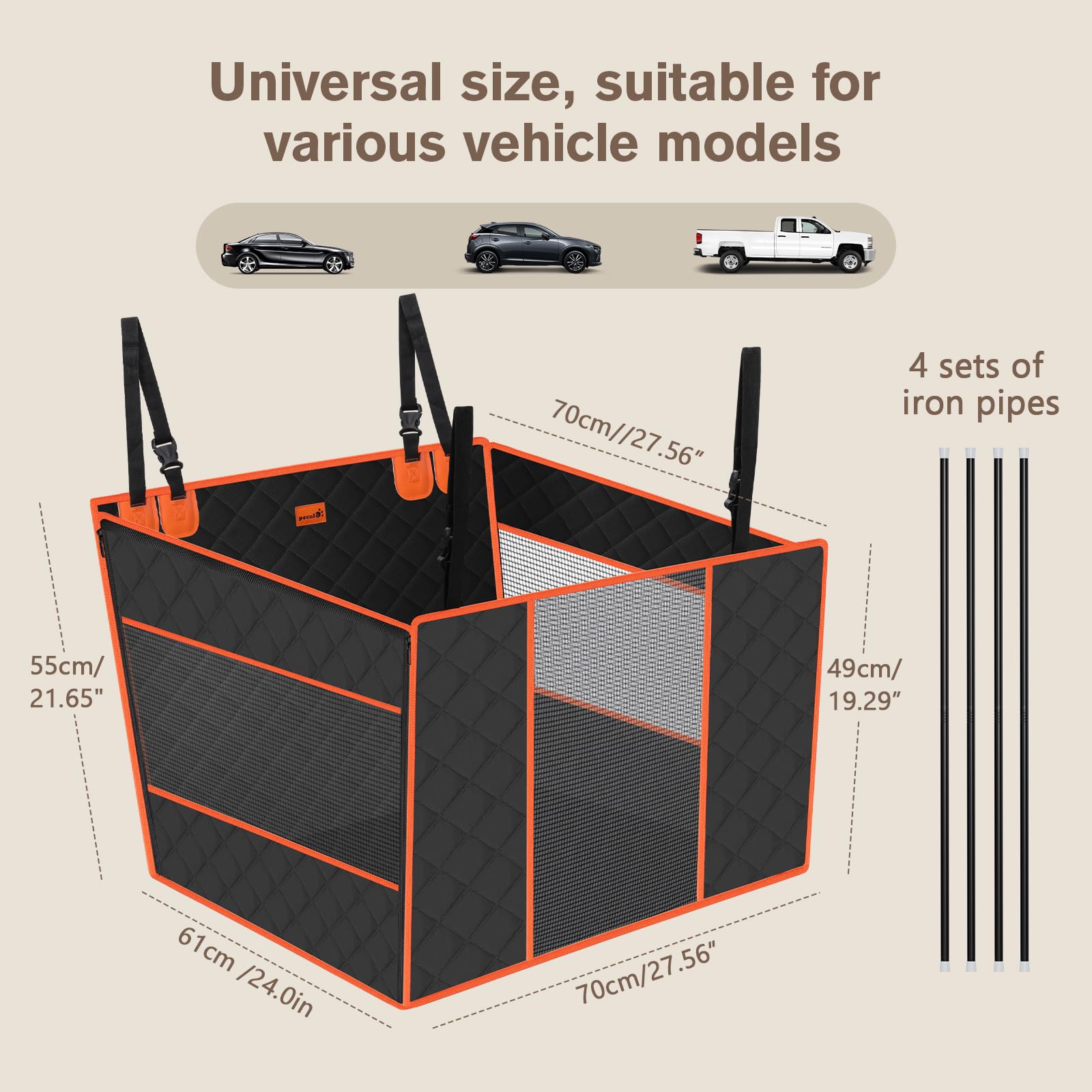 - Erhöhte Seitenwände: Speziell geformte, trapezförmige Seitenflanken passen sich optimal an die Autotüren an, schützen diese vor Kratzern und verhindern gleichzeitig, dass Ihr Hund während der Fahrt aus dem Sitz springt.