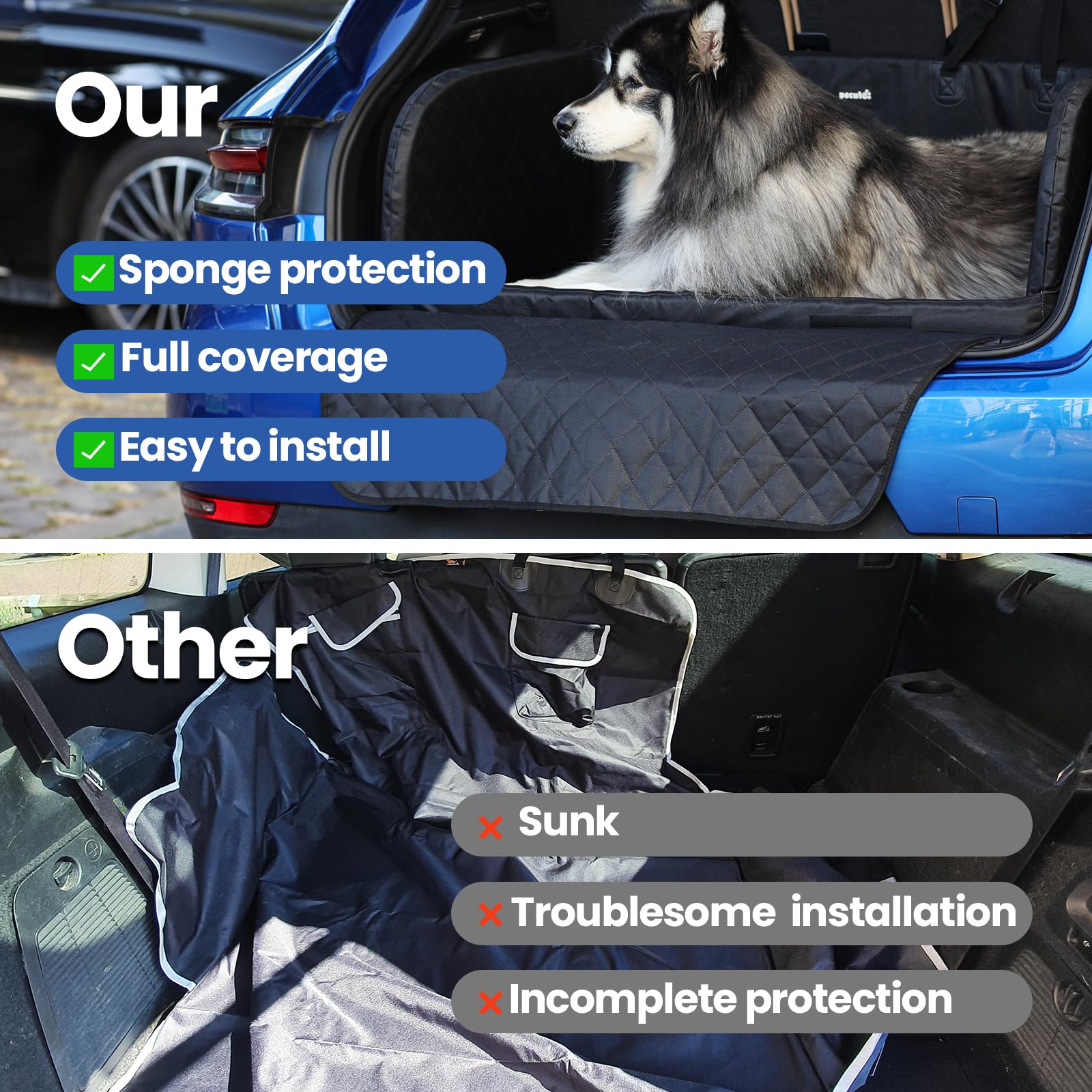 Diese gesteppte Kofferraumdecke bietet die ideale Lösung, um den Kofferraum Ihres SUVs sauber zu halten und Ihrem Hund gleichzeitig eine sichere und bequeme Reise zu ermöglichen.