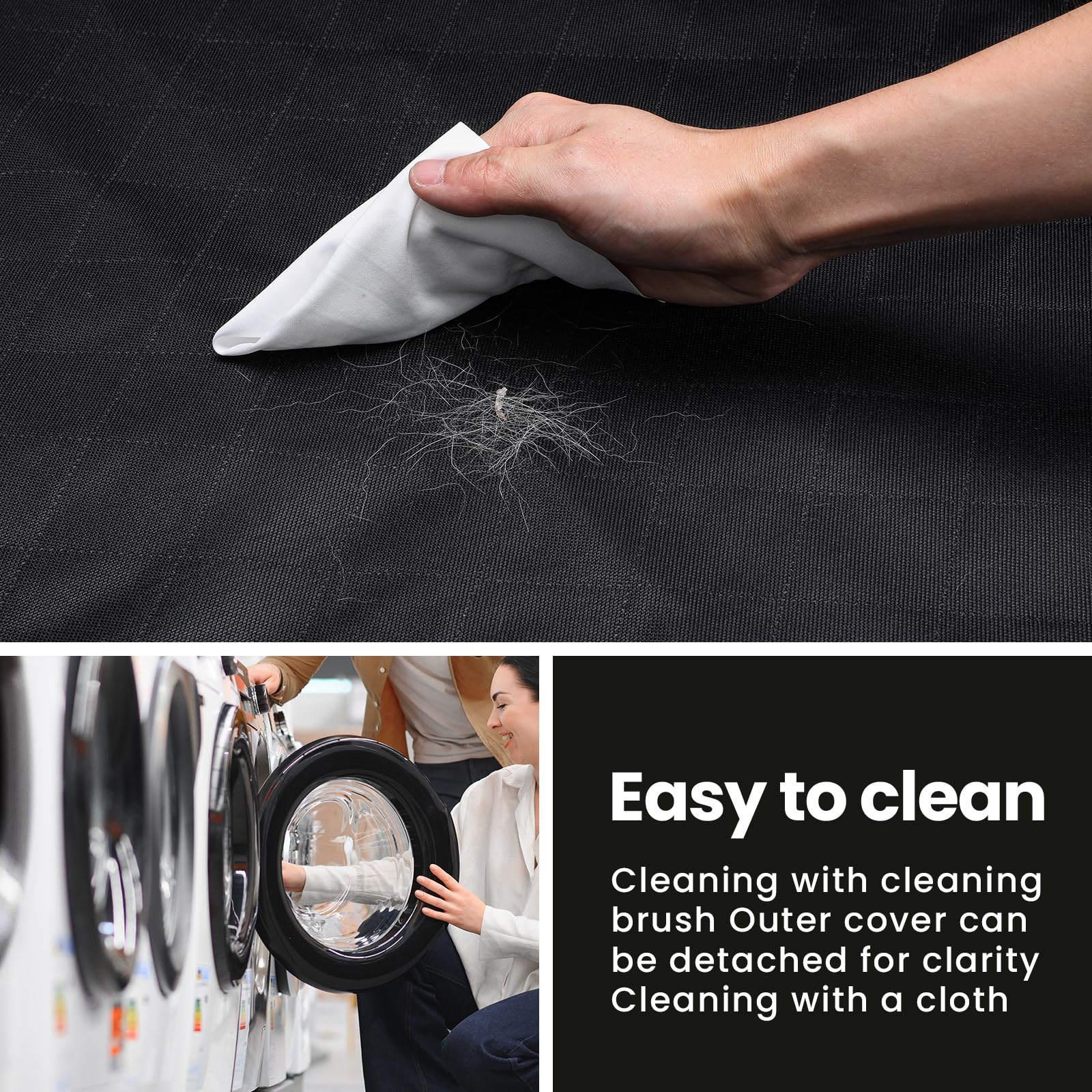 Die Reinigung ist sehr unkompliziert. Leichte Verschmutzungen, Schmutz oder Tierhaare können einfach mit einem feuchten Tuch abgewischt werden. Für eine tiefere und hygienische Reinigung ist der gesamte Bezug auch praktisch in der Maschine waschbar.