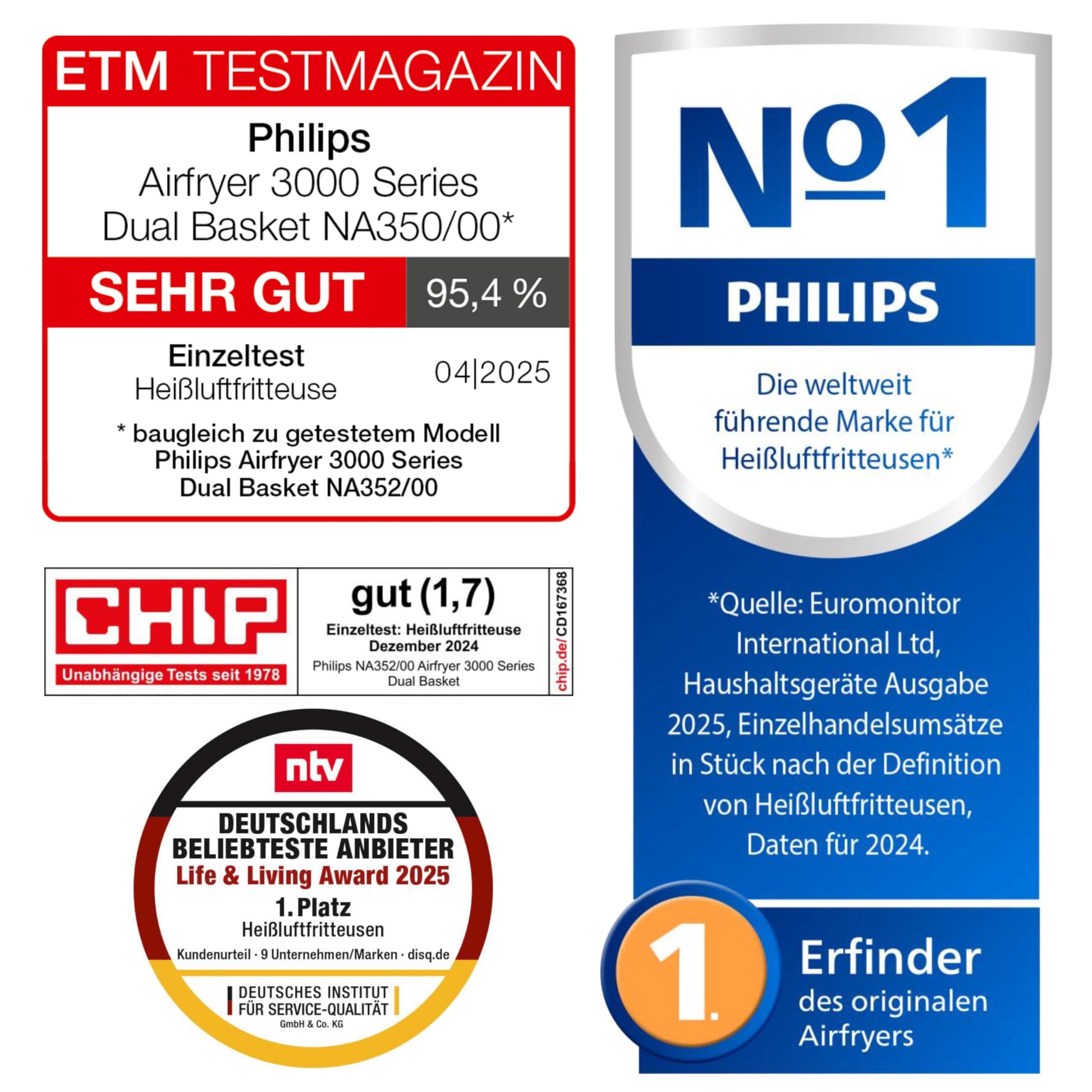 Philips Dual Basket Airfryer NA350/03 – 9L Heissluftfriteuse