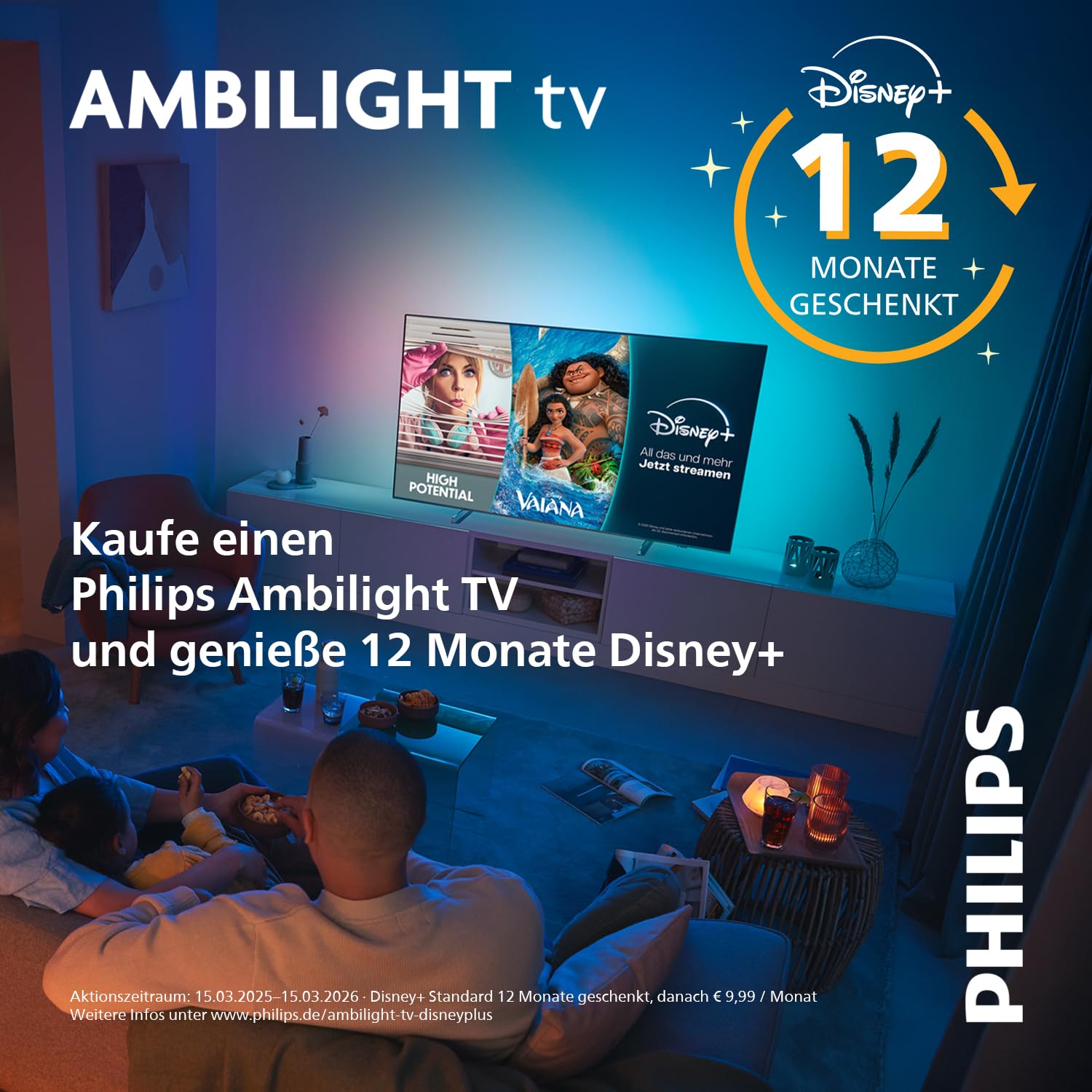 Dieser Fernseher ist mehr als nur ein Bildschirm – er ist ein Erlebnis. Die Kombination aus ultrahochauflösenden 4K-Bildern und dem dynamischen Ambilight lässt Filme und Serien grösser und fesselnder wirken. Selbst Musik wird zu einem visuellen Spektakel mit einer eigenen, auf den Rhythmus abgestimmten Lichtshow.
