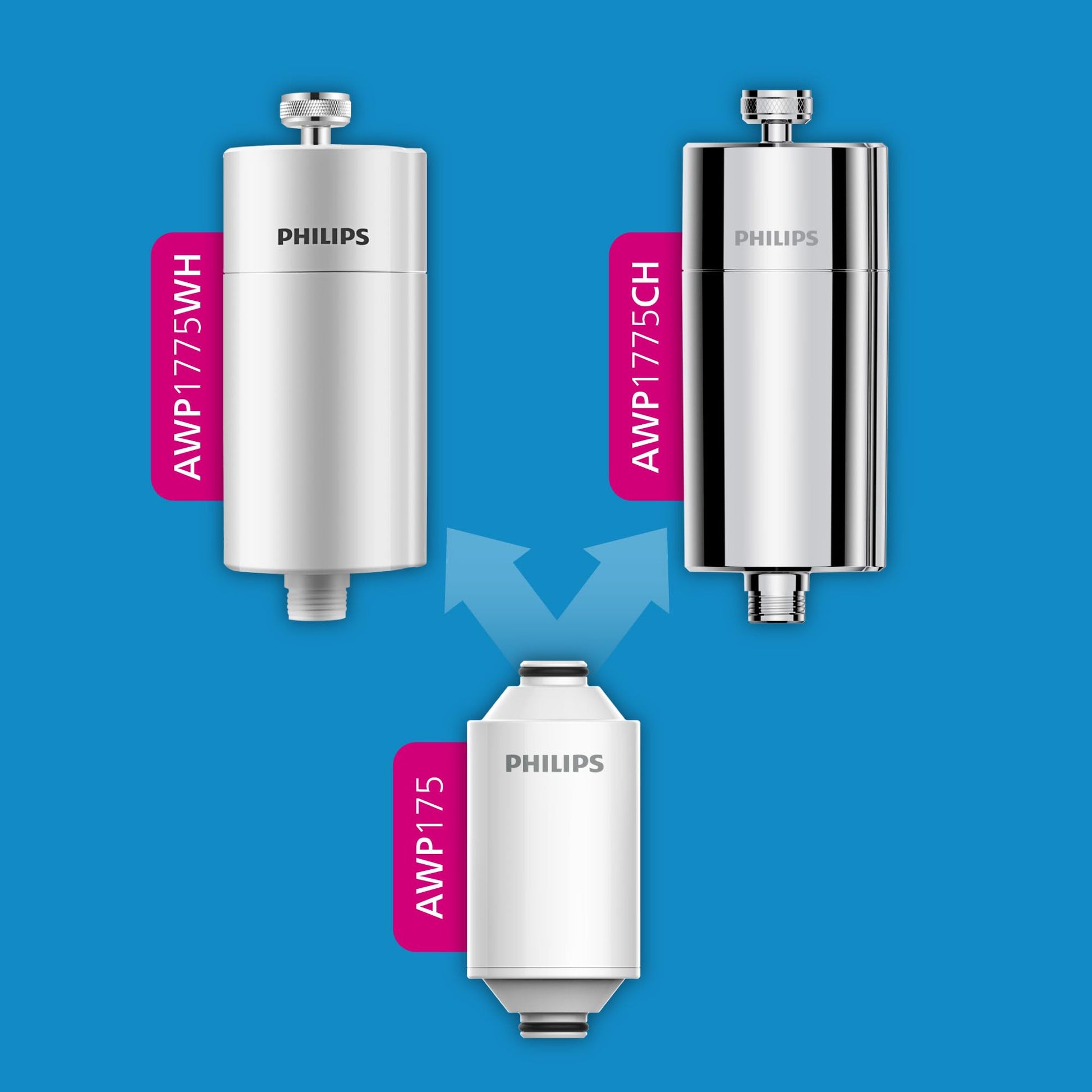 Philips Water Inline-Duschfilter Chrom mit 3 Ersatzkartuschen