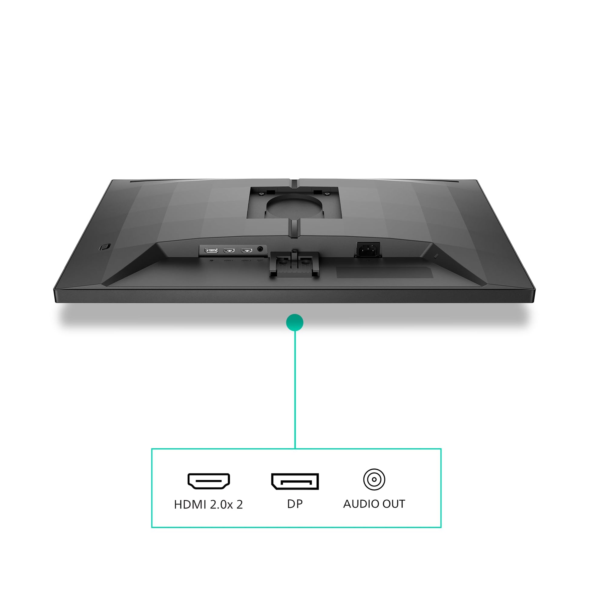 - Umfassende Konnektivität mit 2x HDMI 2.0, 1x DisplayPort 1.4 und einem 3,5-mm-Kopfhörerausgang.