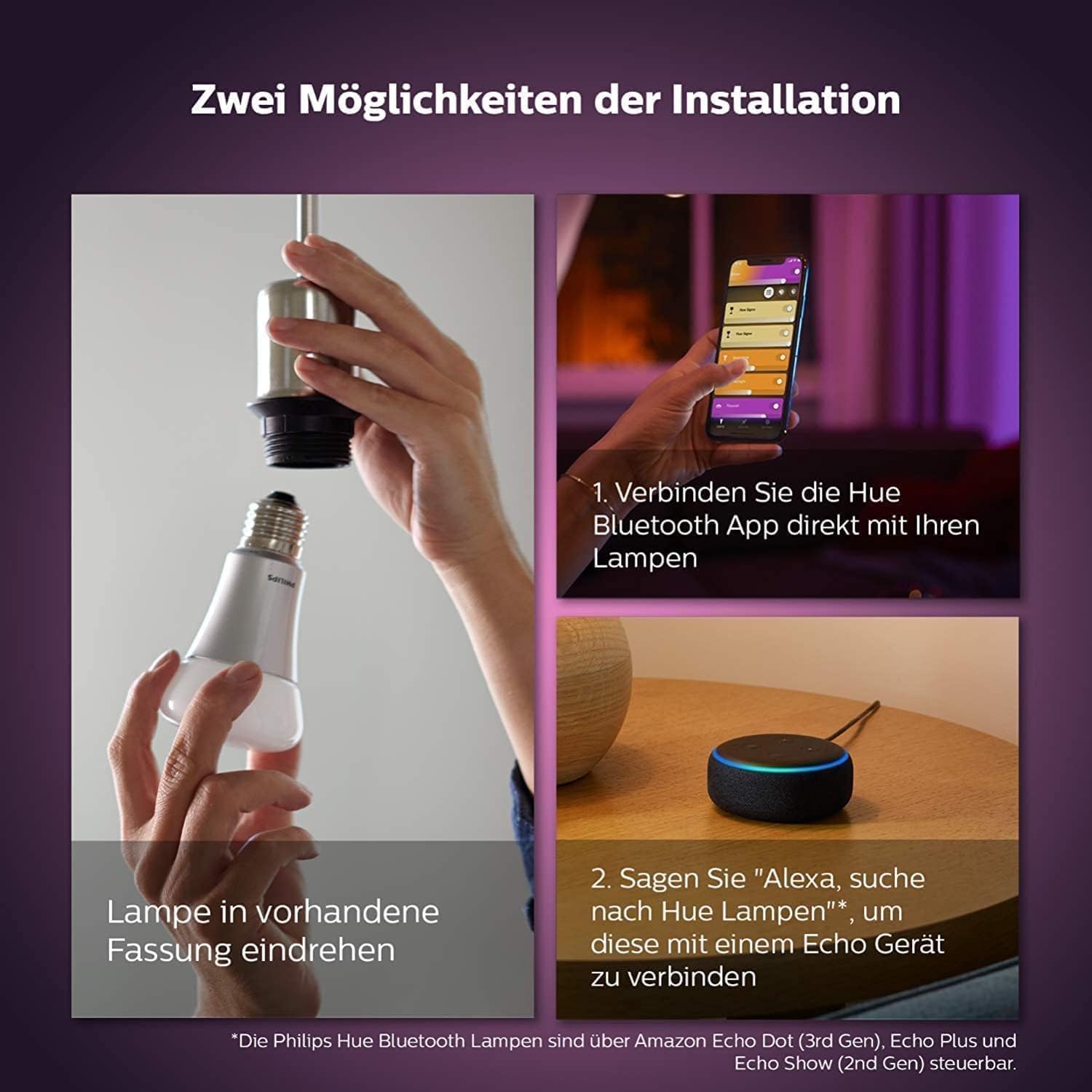 Sie können die Lampen direkt und einfach per Bluetooth mit der App oder per Sprachbefehl über Amazon Alexa steuern. Eine Hue Bridge ist für die Grundfunktionen nicht nötig, schaltet aber erweiterte Möglichkeiten wie die Steuerung von unterwegs, intelligente Automatisierungen und die Synchronisation mit Entertainment frei.
