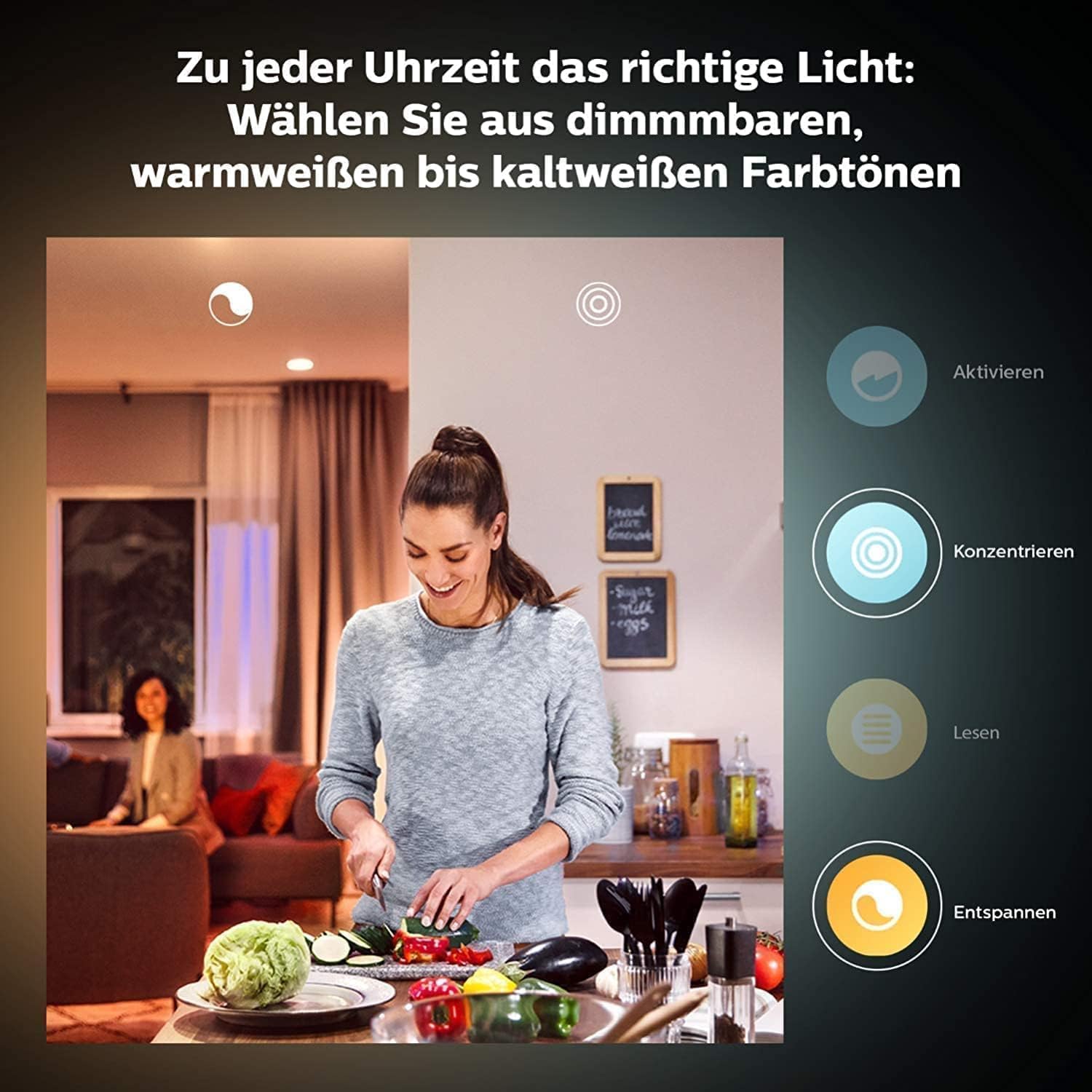 - Grenzenloses Farbspektrum: Wählen Sie aus 16 Millionen Farben sowie diversen Weisstönen von kühl bis warm, um für jede Situation die perfekte, dimmbare Atmosphäre zu schaffen.