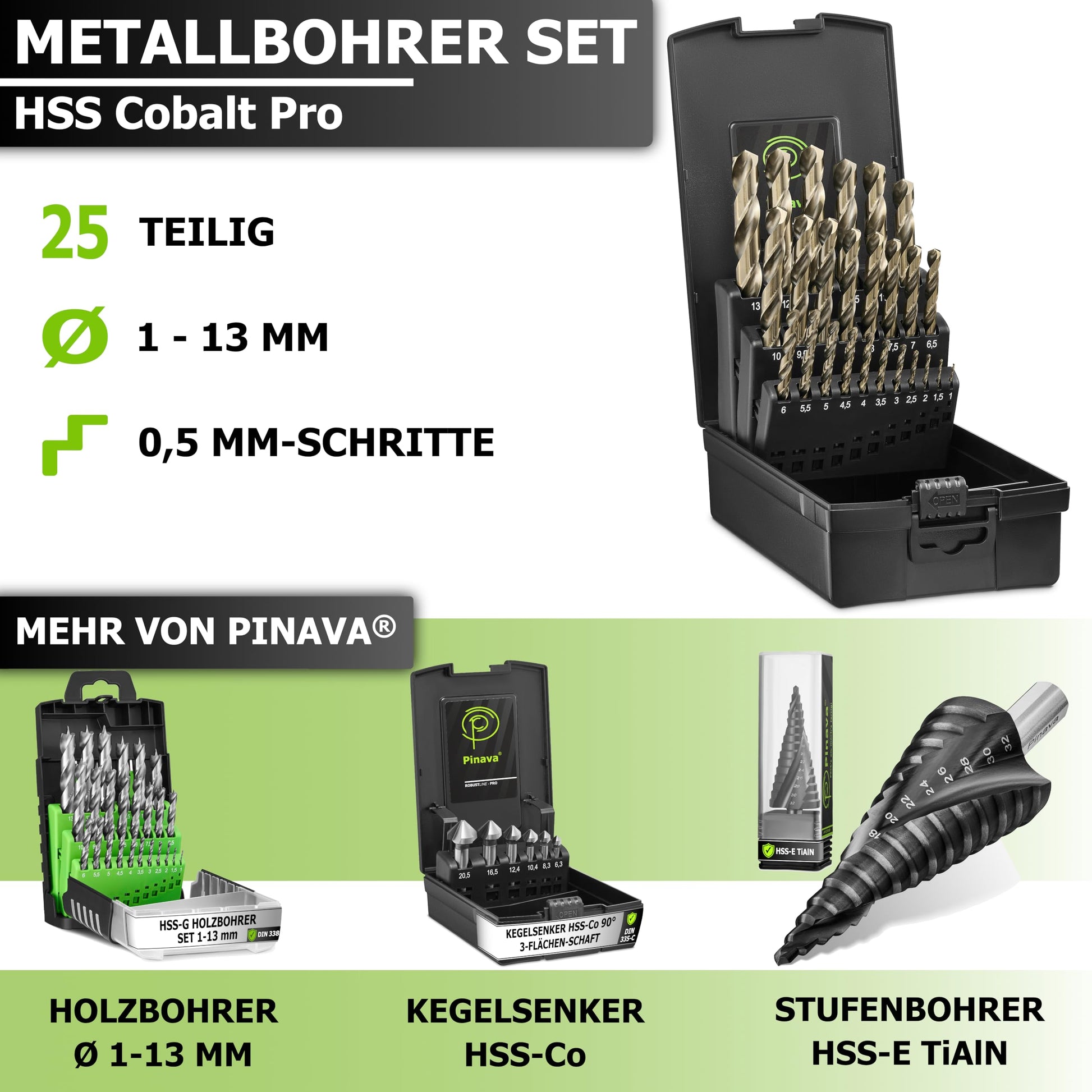 Pinava® HSS Cobalt Pro Edelstahlbohrer Set - 25tlg. 1-13mm