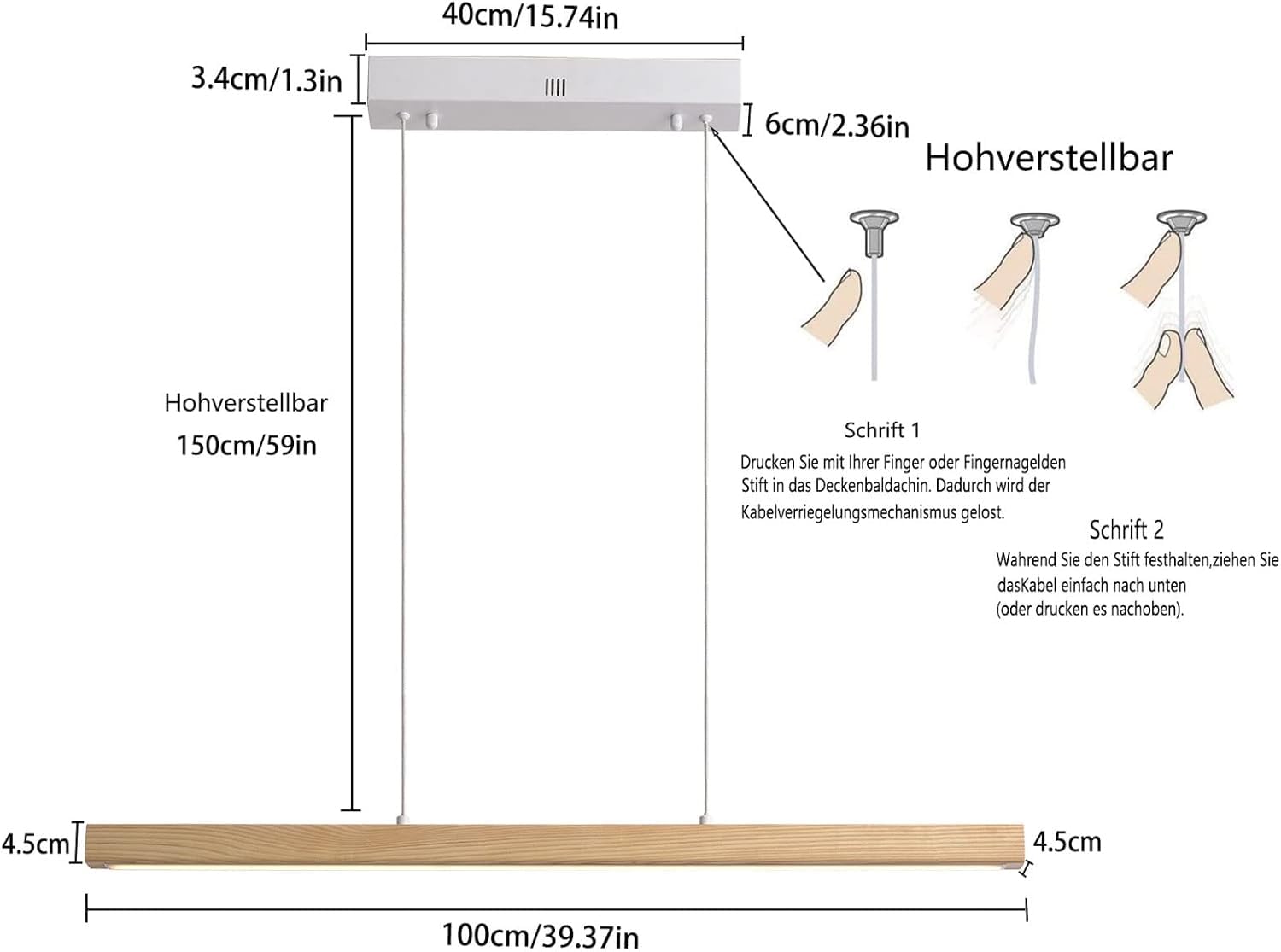 Dank der einfachen Höhenverstellbarkeit passt sich die Leuchte perfekt an Ihre Gegebenheiten an, sei es über dem Esstisch, der Kücheninsel oder im Arbeitszimmer. Die durchdachten Funktionen wie das Nachtlicht und die Speicherung der letzten Einstellung erhöhen den täglichen Komfort. Verlassen Sie sich auf eine energieeffiziente, langlebige und sicherheitsgeprüfte Beleuchtungslösung.