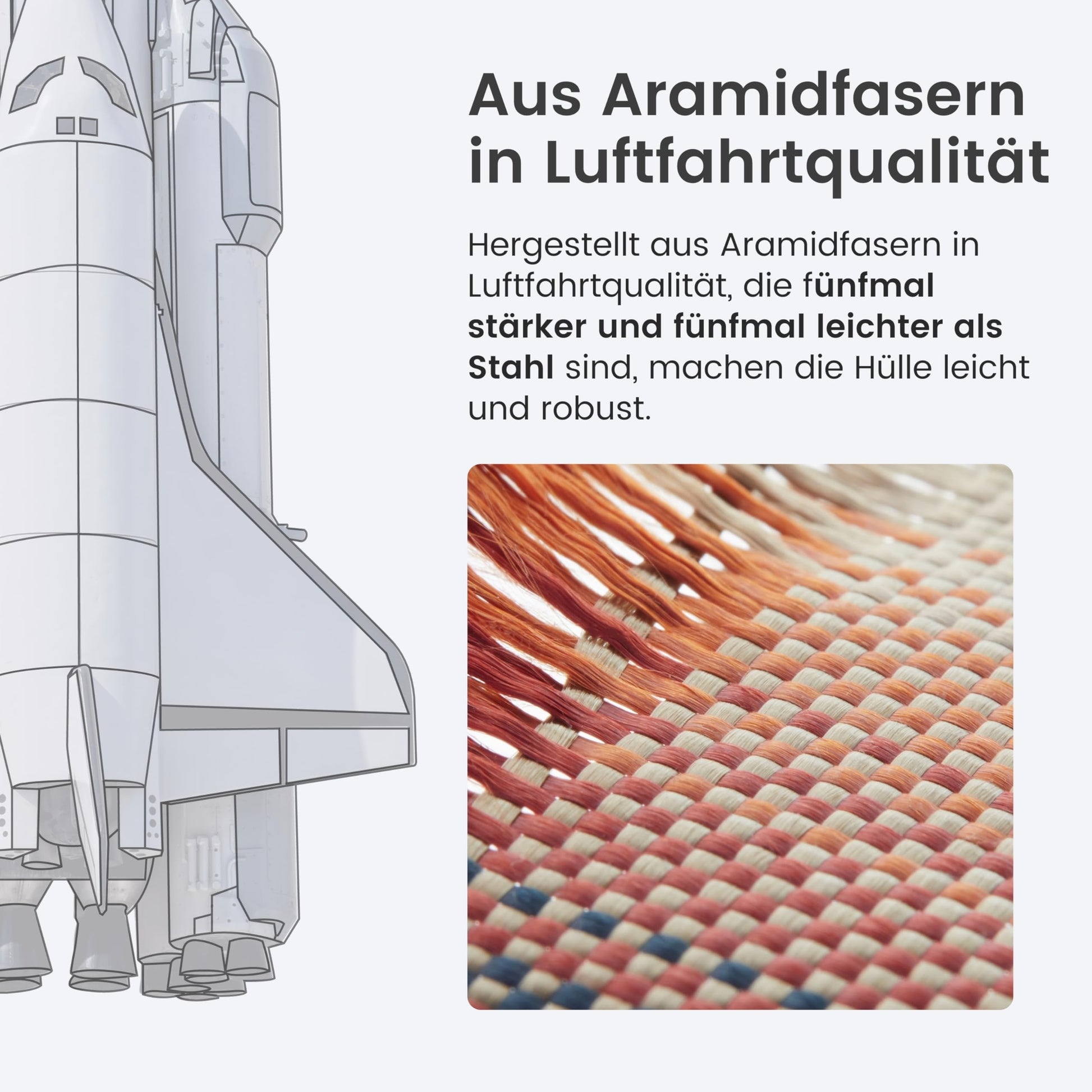 - Hightech-Material: Gefertigt aus 100% Aramidfasern in Luftfahrtqualität, die bei minimalem Gewicht eine ausserordentliche Stärke bieten.