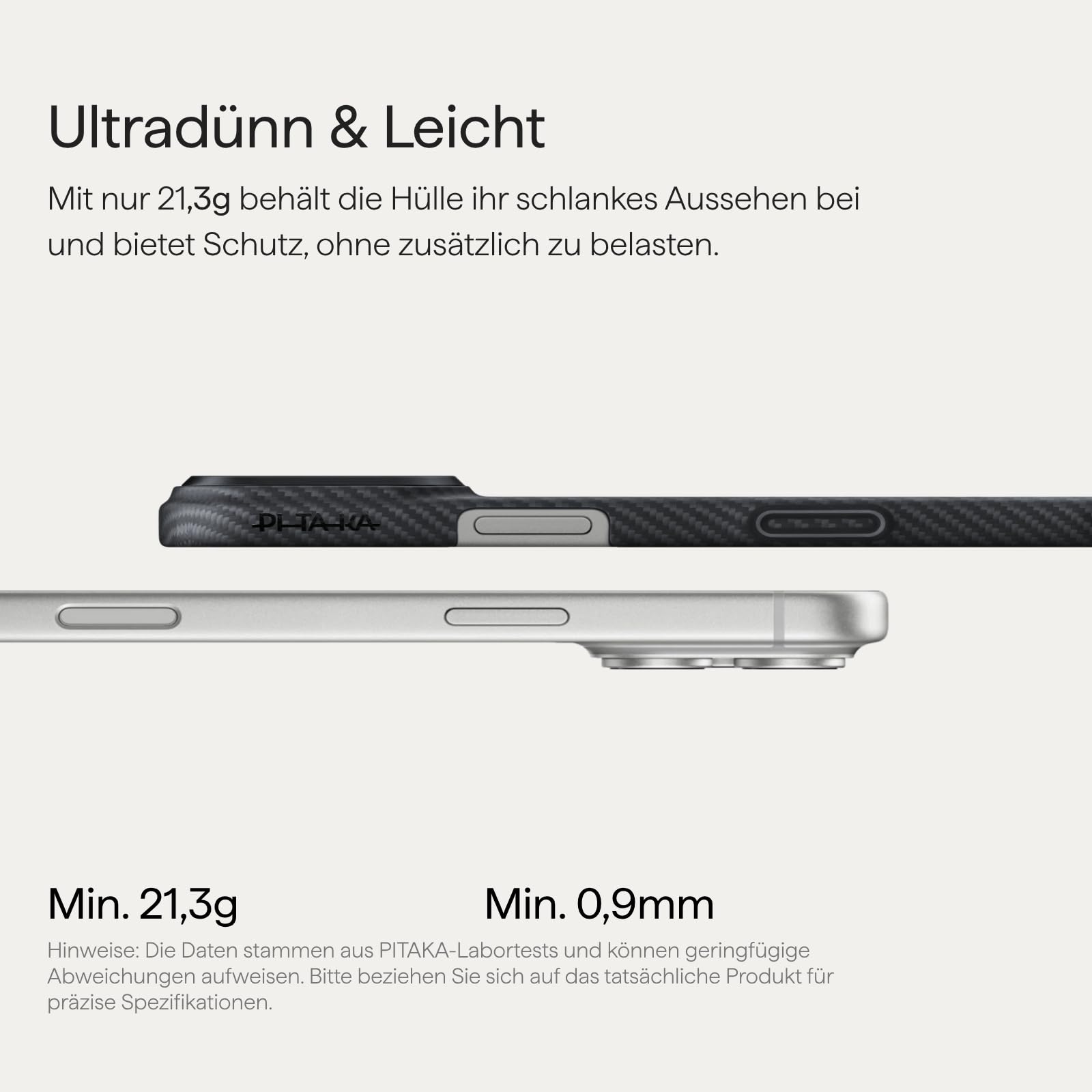 Pitaka iPhone 17 Pro Hülle Aramid Magsafe - ultra dünn, Schwarz/Grau