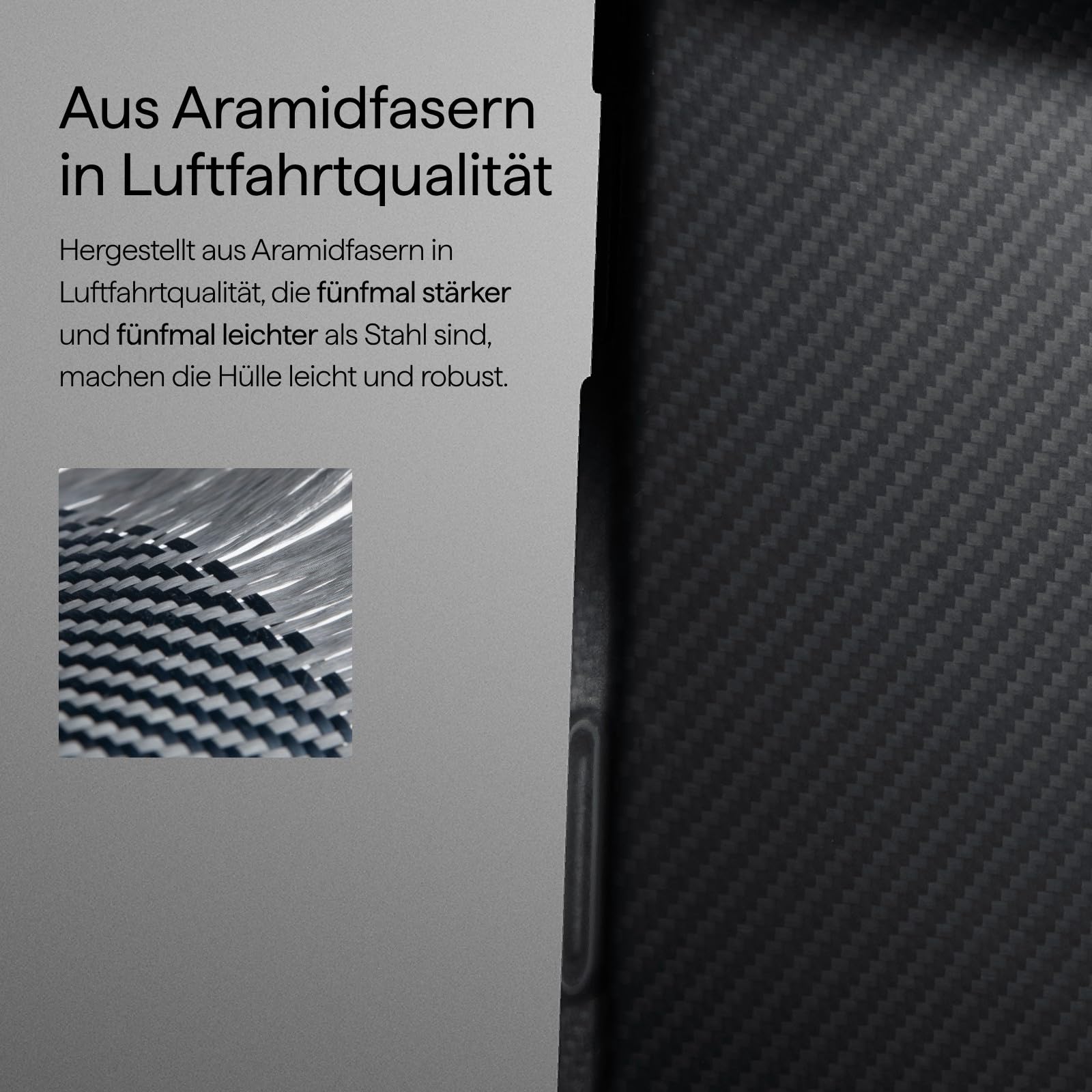 Dank der Verwendung von Aramidfaser ist diese Hülle extrem robust und schützt Ihr iPhone zuverlässig vor den Tücken des Alltags, ohne dabei aufzutragen. Mit ihrem ultradünnen Profil und federleichten Gewicht spüren Sie die Hülle kaum, während die spezielle Oberflächenstruktur einen hervorragenden Griff bietet und die Ästhetik Ihres Geräts unterstreicht.