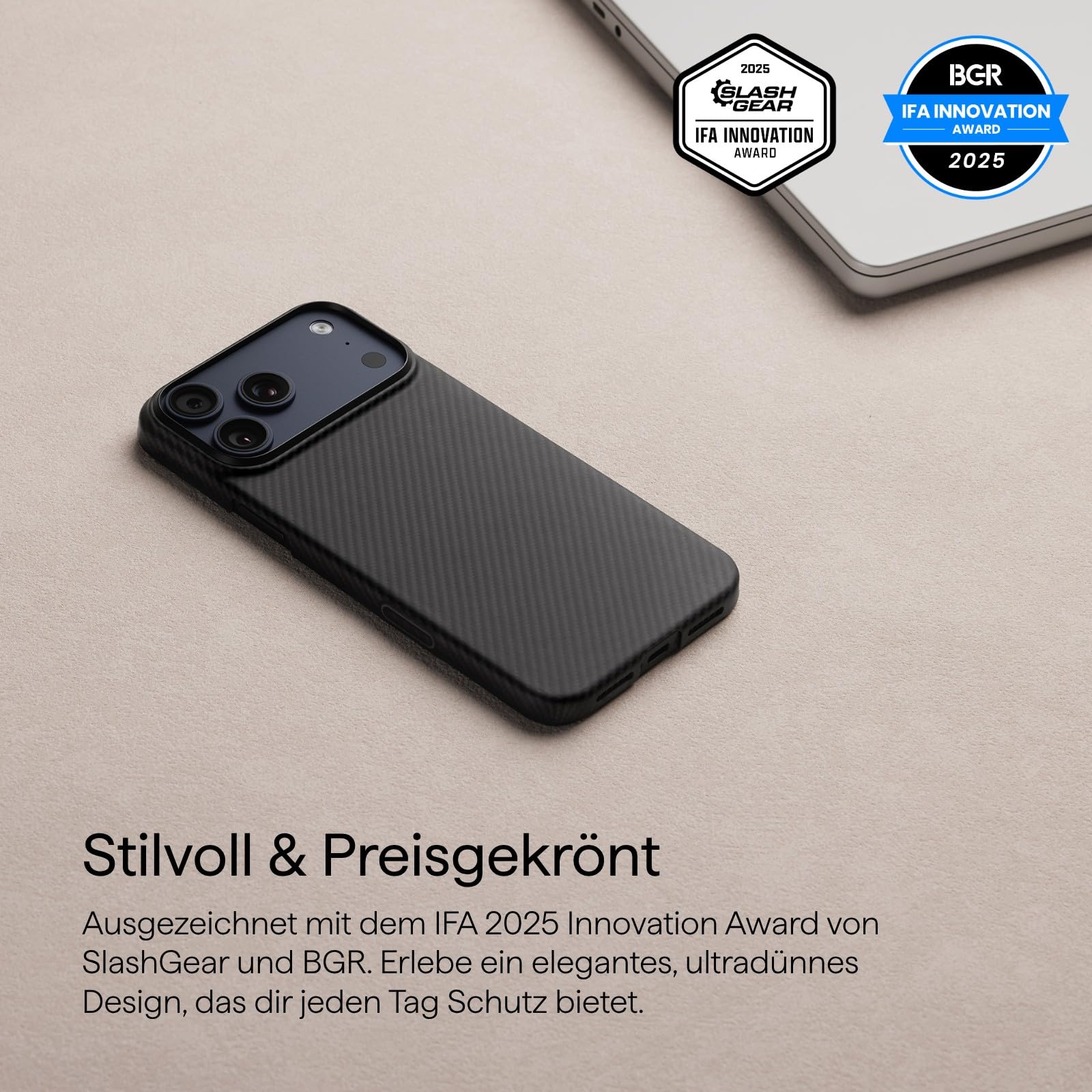 pitaka iPhone 17 Pro Max Schutzhülle Aramidfaser - Schwarz/Grau