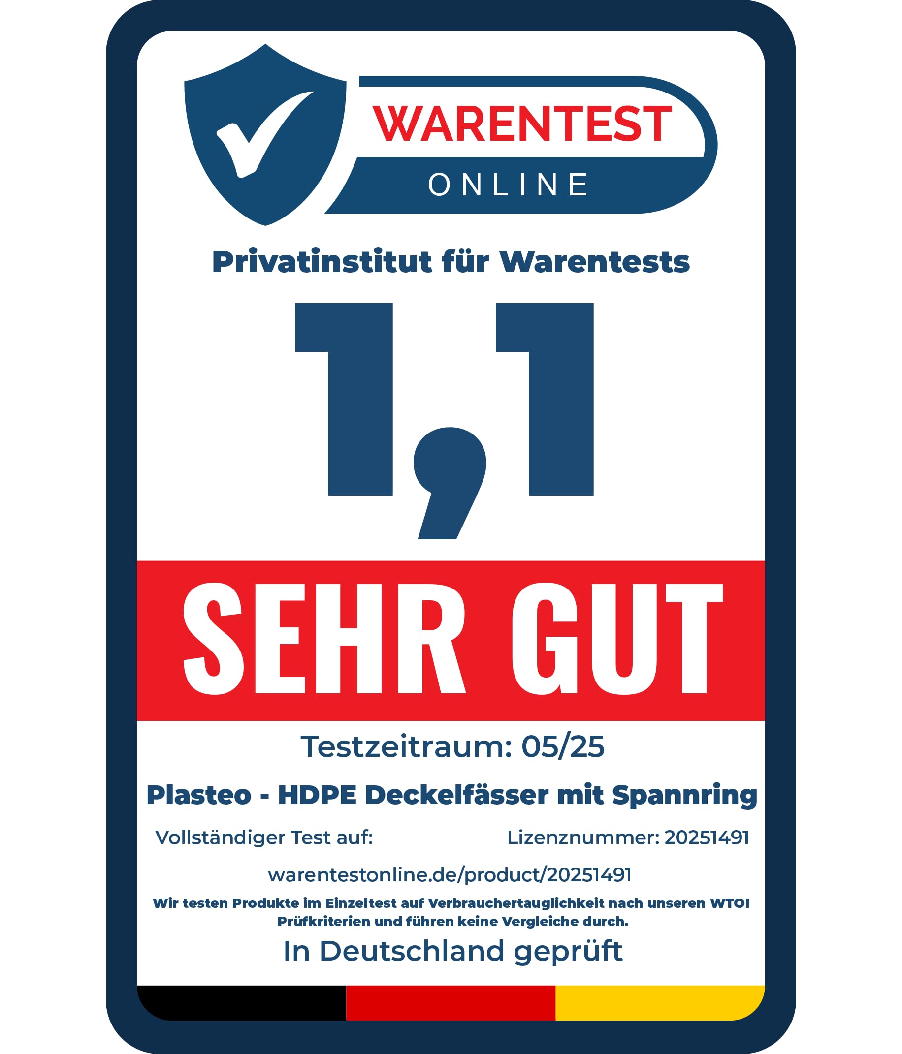 Ja, absolut. Die Konstruktion des Fasses ist palettengerecht und gezielt auf Stapelbarkeit ausgelegt. Dies ermöglicht eine sehr effiziente und platzsparende Lagerung in Gewerbe und Haushalt.