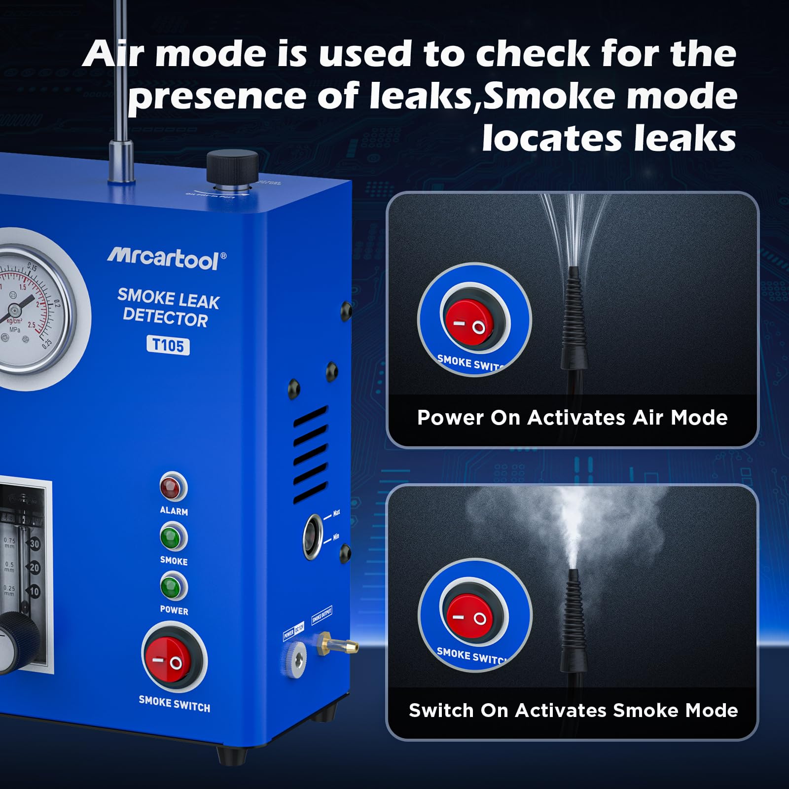 Der PLAYOCCAR T105 Rauch-Durchlass-Detektor ist ein professionelles Diagnosegerät, das entwickelt wurde, um Lecks in diversen Fahrzeugsystemen schnell und zuverlässig aufzuspüren. Mit seiner integrierten Luftpumpe und präzisen Steuerung ist es ein unverzichtbares Werkzeug für jede Werkstatt und jeden ambitionierten Schrauber.