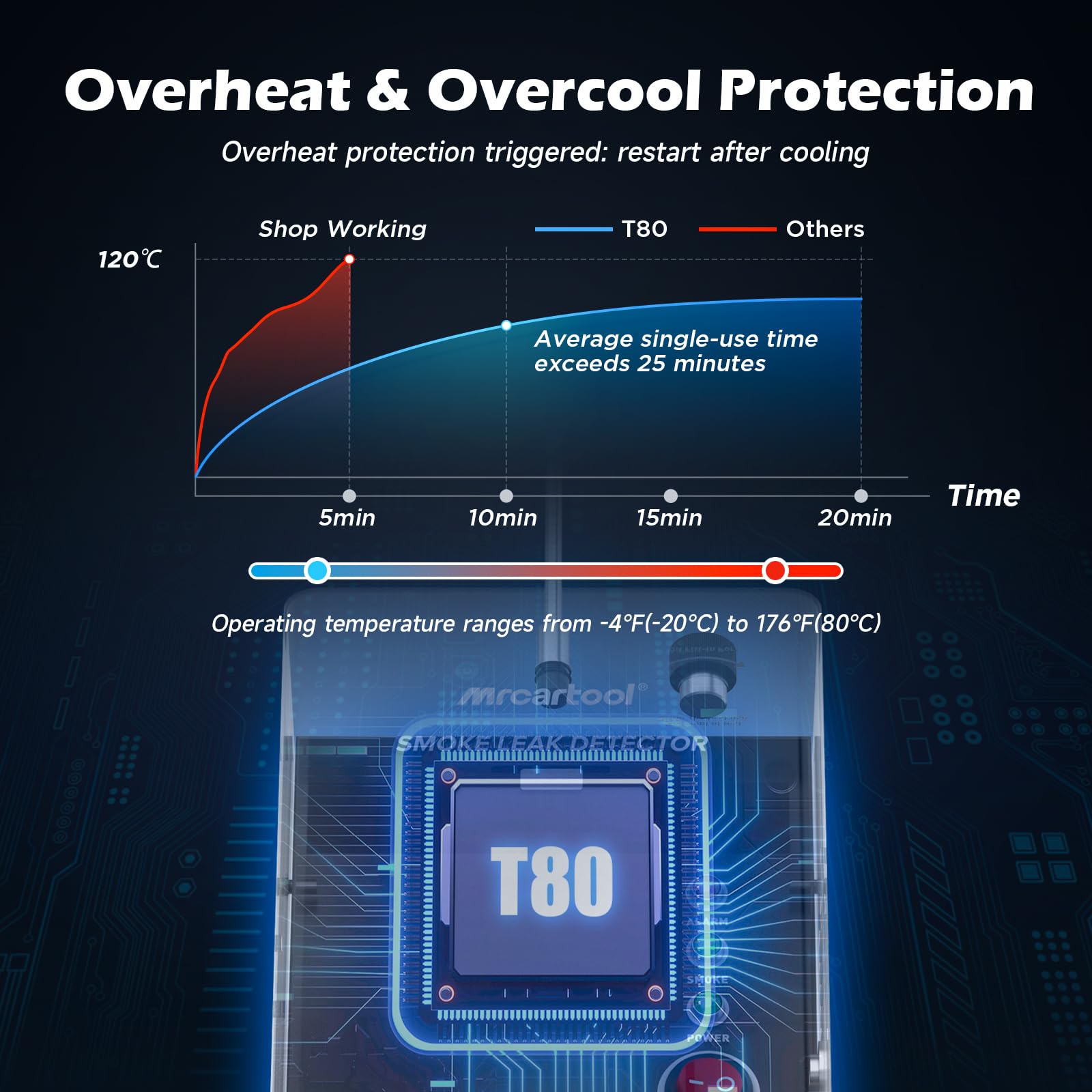 - Intelligenter Schutzmechanismus: Ein automatischer Überhitzungs- und Frostschutz (aktiv bei über 70°C und unter -20°C) schaltet das Gerät ab und sorgt so für die Sicherheit von Anwender und Gerät.