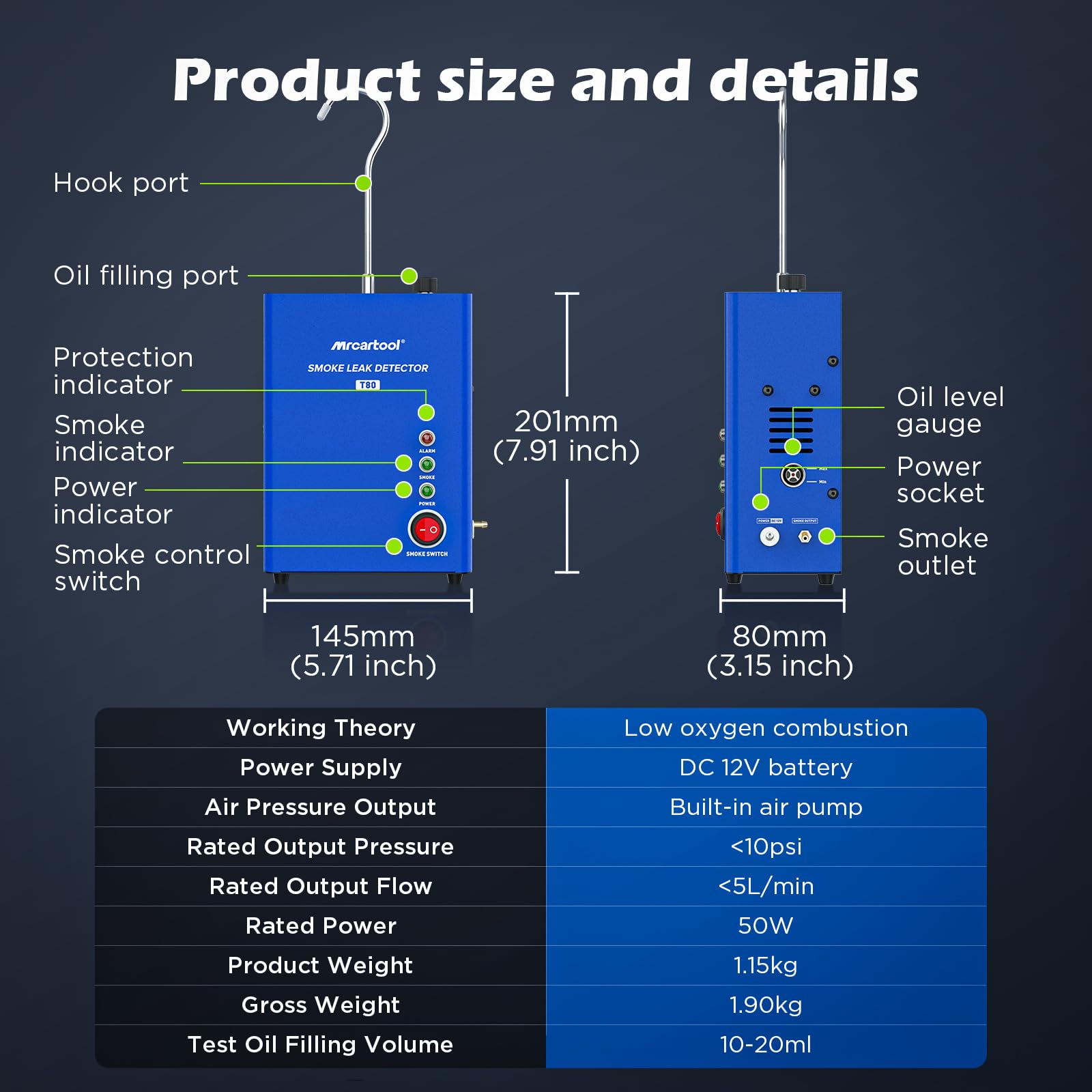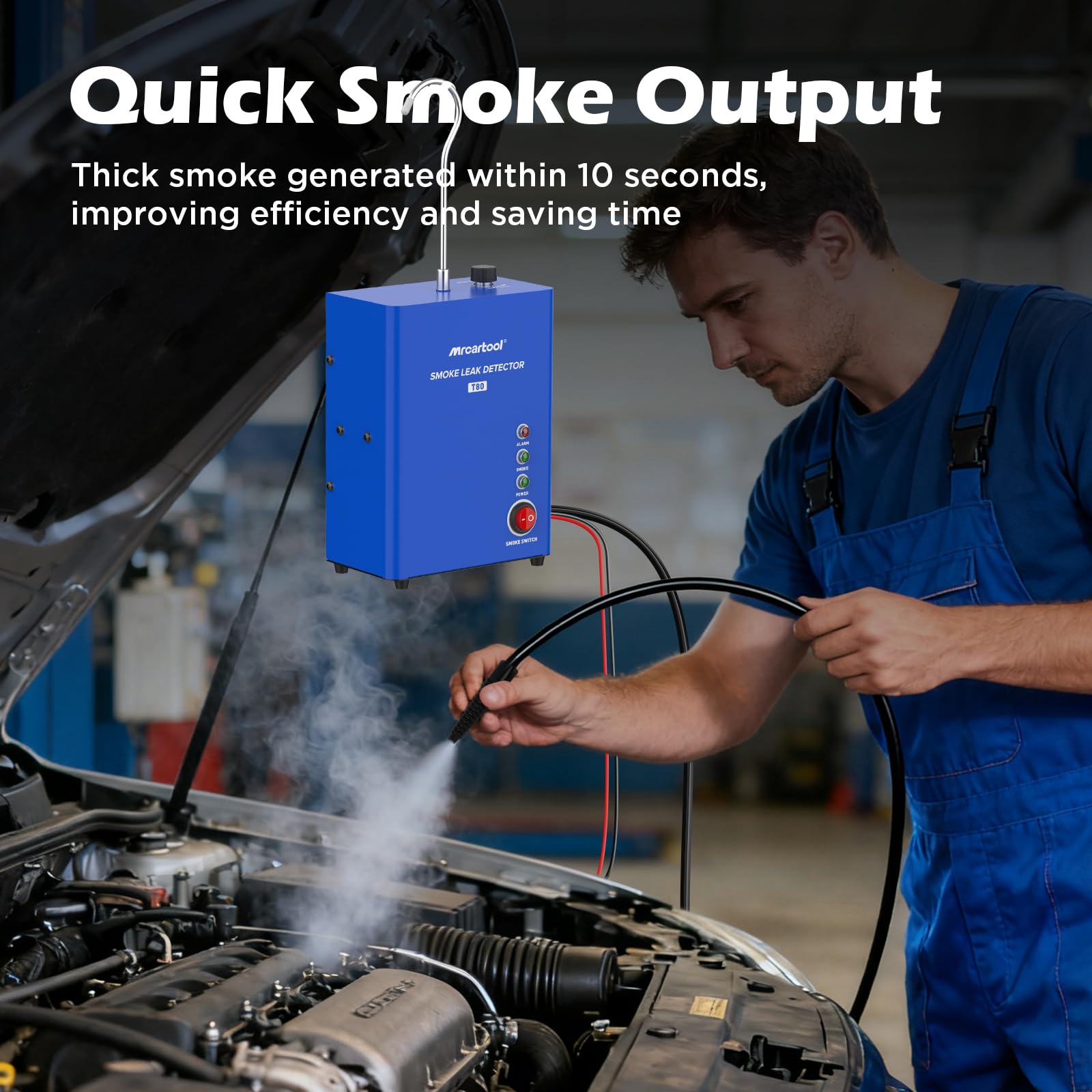 - Schnelle Raucherzeugung: Bereits 10 Sekunden nach dem Einschalten produziert die Maschine dichten Rauch für eine sofortige und klare Lecksuche.