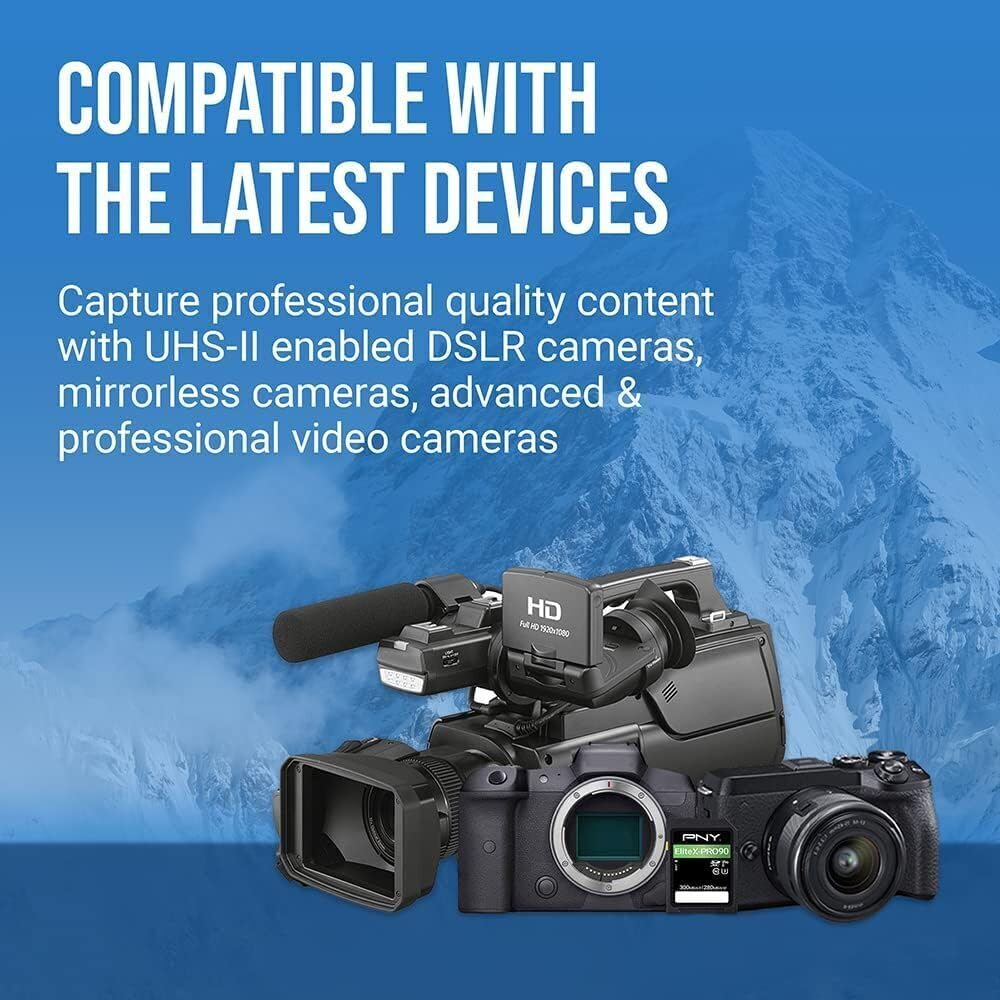 - Umfassende Kompatibilität: Funktioniert mit UHS-II-fähigen DSLR- und spiegellosen Kameras sowie professionellen Videokameras und ist abwärtskompatibel zu UHS-I-Geräten (bei UHS-I-Geschwindigkeit).