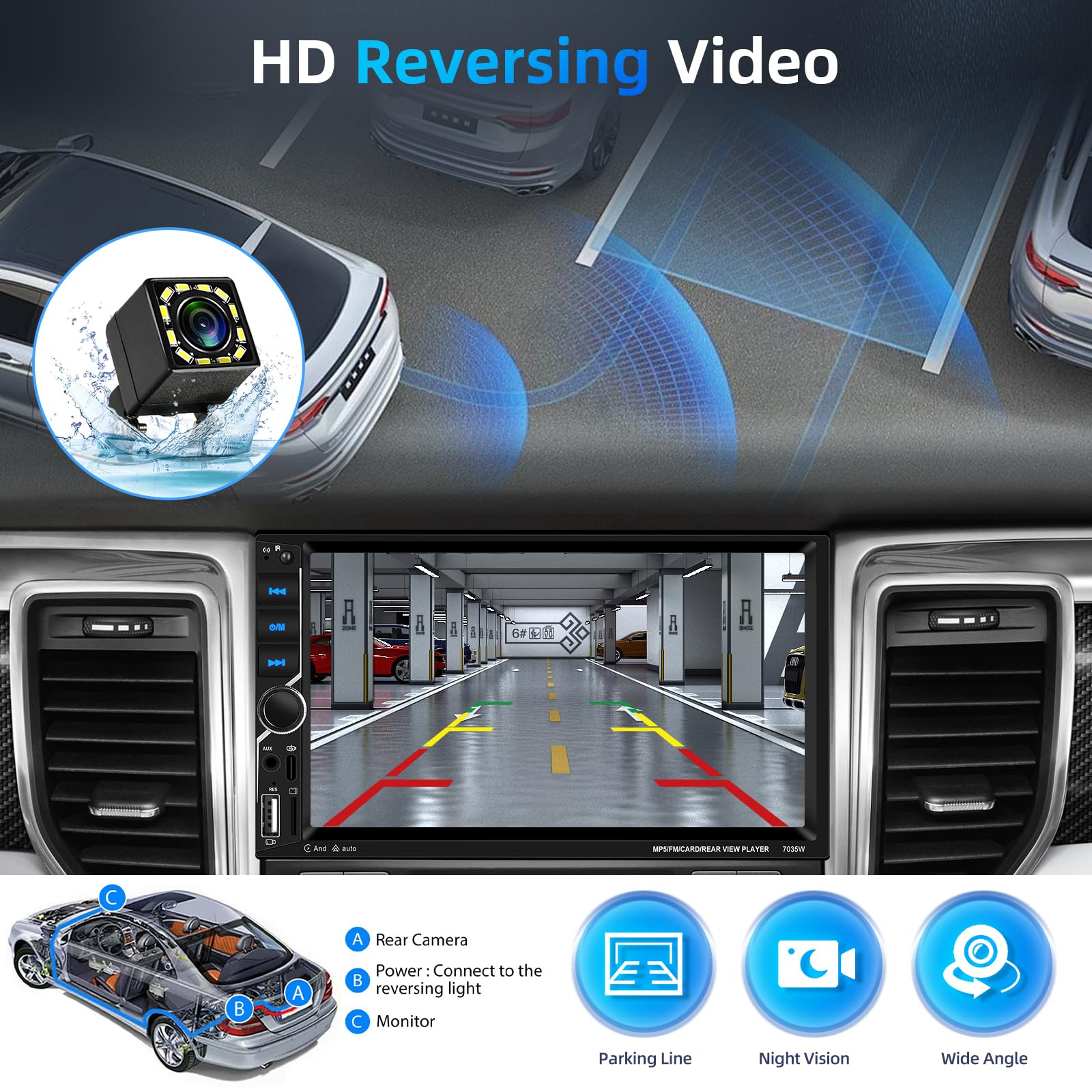 Podofo 2 DIN Carplay Android Auto Autoradio 7 Zoll - Kamera