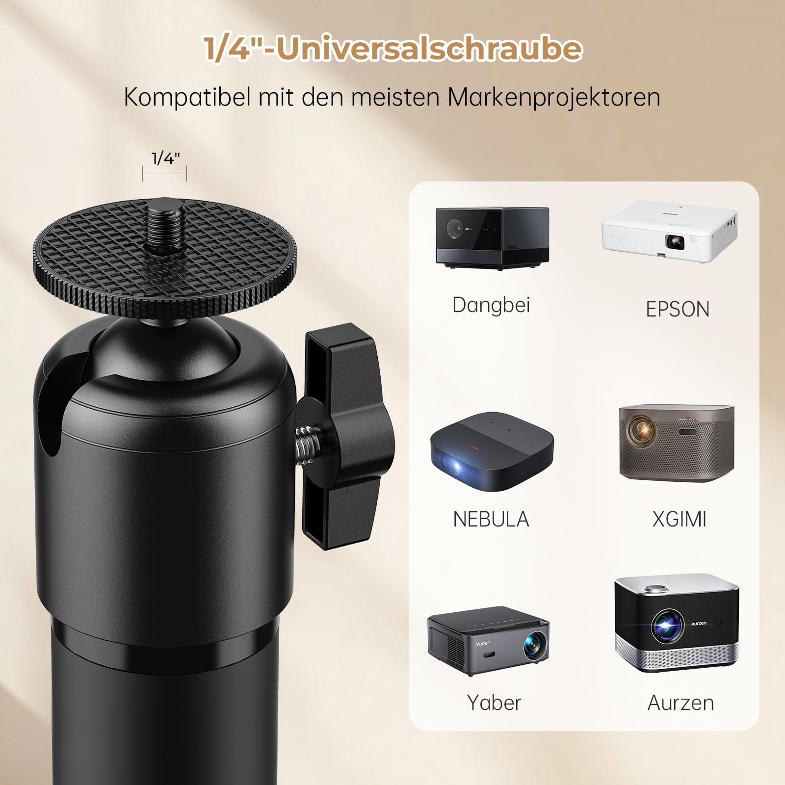 - Umfassende Kompatibilität: Ausgestattet mit einem universellen 1/4-Zoll-Schraubgewinde (6 mm), passend für die meisten Projektoren (z.B. XGIMI, Xiaomi, JmGO), Kameras, Webcams und Camcorder.