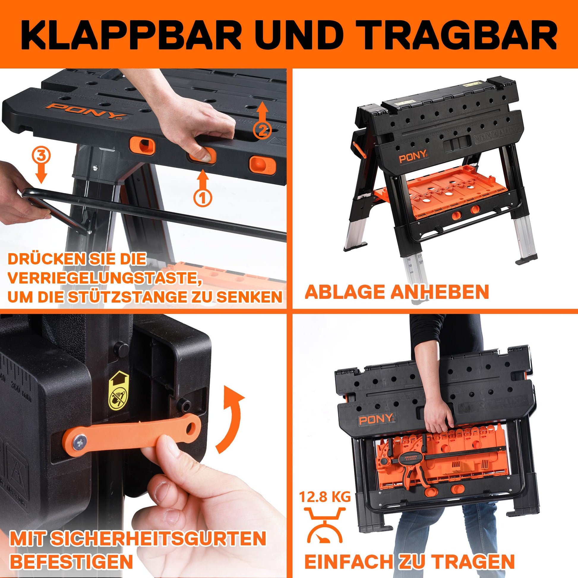 PONY 2 in 1 Werkbank klappbar – mit 4 Zwingen 454kg
