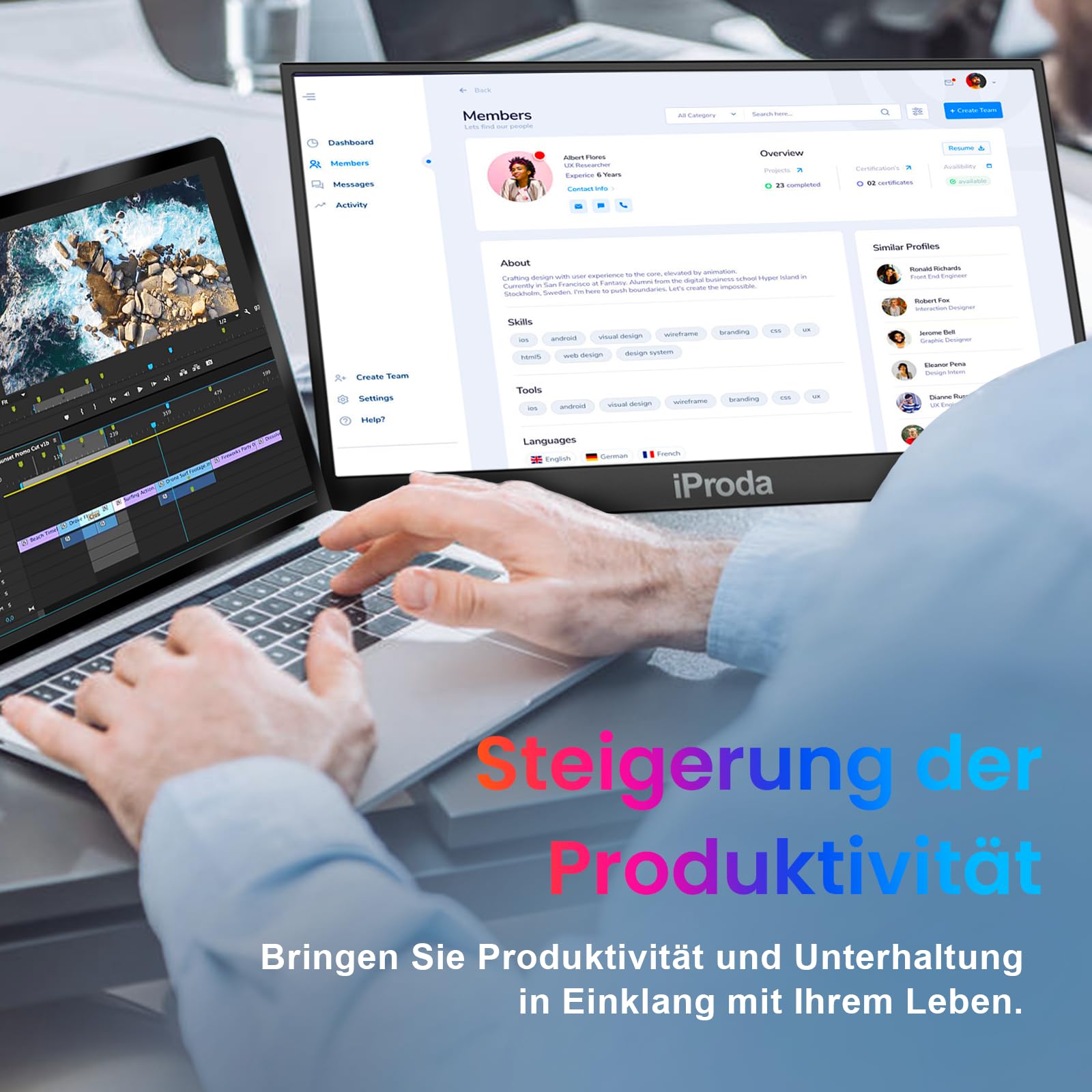 Steigern Sie Ihre Produktivität: Nutzen Sie den portablen Monitor als zweiten Bildschirm, um Ihr Multitasking auf ein neues Level zu heben. Behalten Sie mehrere Fenster und Anwendungen gleichzeitig im Blick und organisieren Sie Ihre Arbeit deutlich einfacher. Ideal für Grafikarbeiten, Programmierung oder andere aufgabenintensive Tätigkeiten.