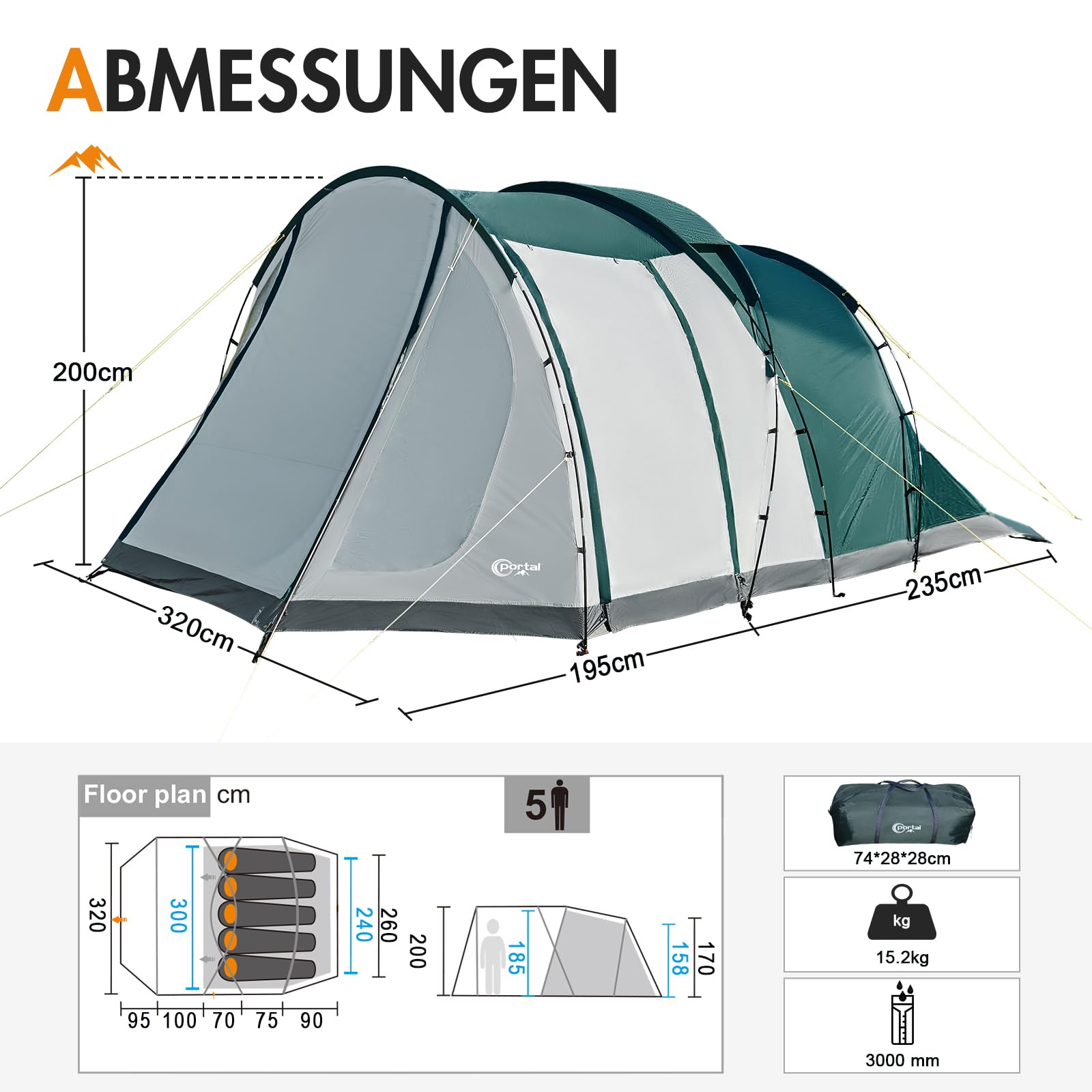 PORTAL 4Plus Familien Campingzelt - 5 Personen Tunnelzelt