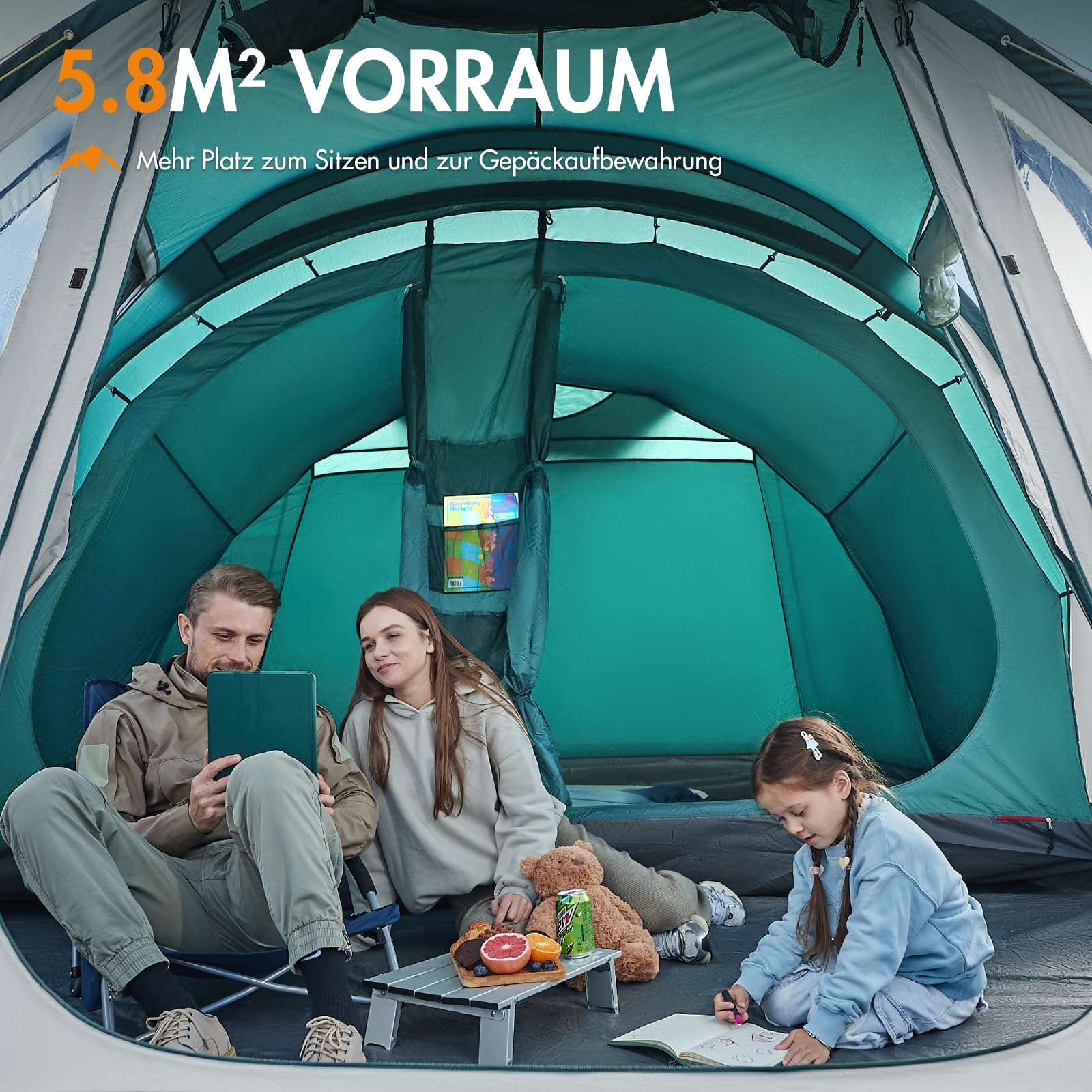 Dieses Familienzelt vereint Platz, Stabilität und Wetterschutz und ist somit die perfekte Wahl für Ihr nächstes Camping-, Reise- oder Festivalabenteuer.