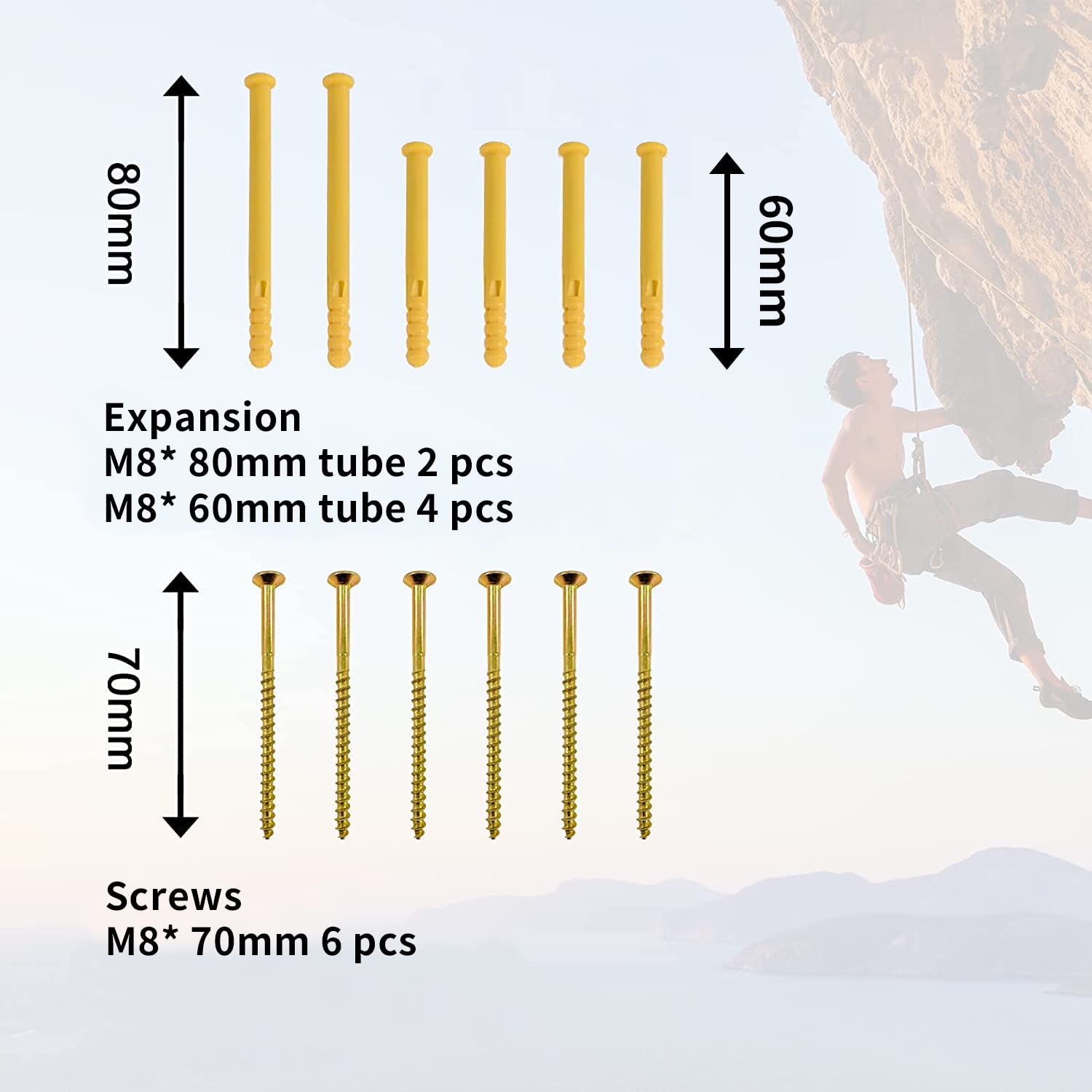 Die Installation ist unkompliziert. Für eine sichere Befestigung empfehlen wir, das Board mit den mitgelieferten langen Schrauben direkt an einer soliden Unterkonstruktion (z.B. Wandbalken) zu montieren. Bei der Anbringung an Wänden ohne passende Unterkonstruktion sollte eine separate Trägerplatte (nicht im Lieferumfang) verwendet werden. Im Lieferumfang sind 6 Schrauben (M8 x 70 mm), passende Dübel sowie ein Stück Schleifpapier zur individuellen Anpassung der Griffigkeit enthalten.