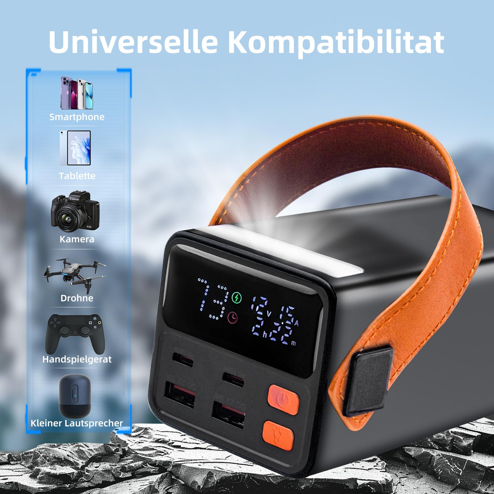 - Enorme Kapazität & Leistung: Mit 80'000mAh versorgt diese Powerbank Ihre Geräte über Tage hinweg. Die 100W Power Delivery über USB-C ermöglicht eine ultraschnelle Aufladung selbst für anspruchsvolle Laptops.
