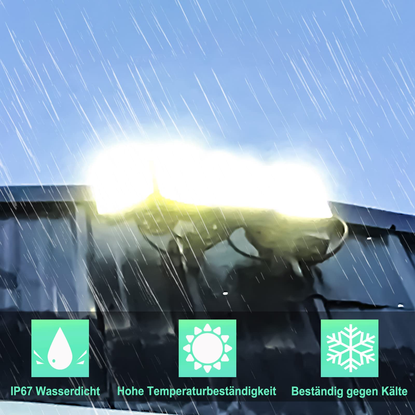 Ja, absolut. Dank des robusten Aluminium-Druckgussgehäuses und der IP67-Zertifizierung ist der Strahler vollständig wasser- und staubdicht. Er ist für den dauerhaften Einsatz unter anspruchsvollen Wetterbedingungen konzipiert.