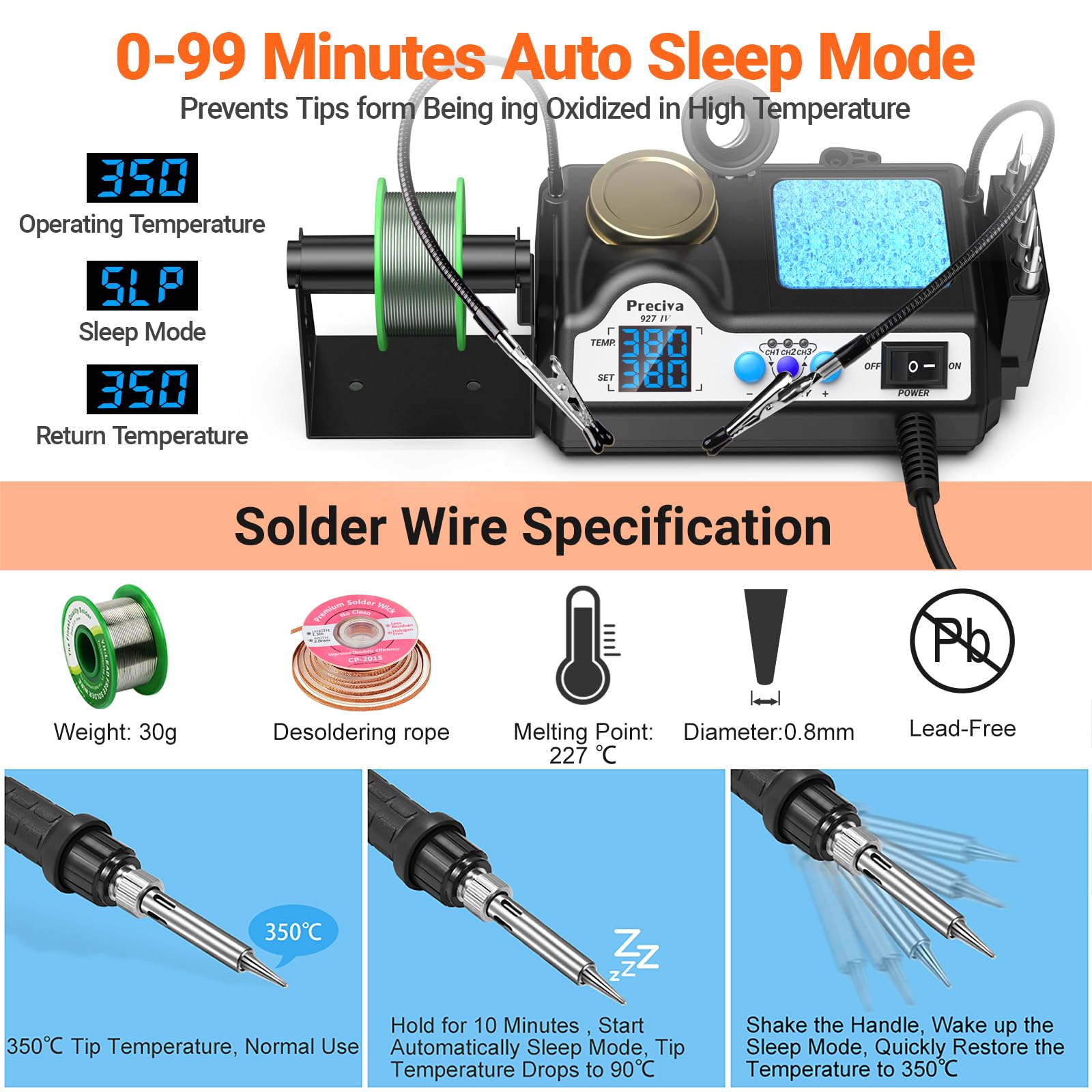 - Langlebigkeit und Sicherheit: Der automatische Schlafmodus schützt den Lötkolben und die Lötspitze vor unnötigem Verschleiss und Überlastung, was die Lebensdauer des gesamten Geräts deutlich verlängert.