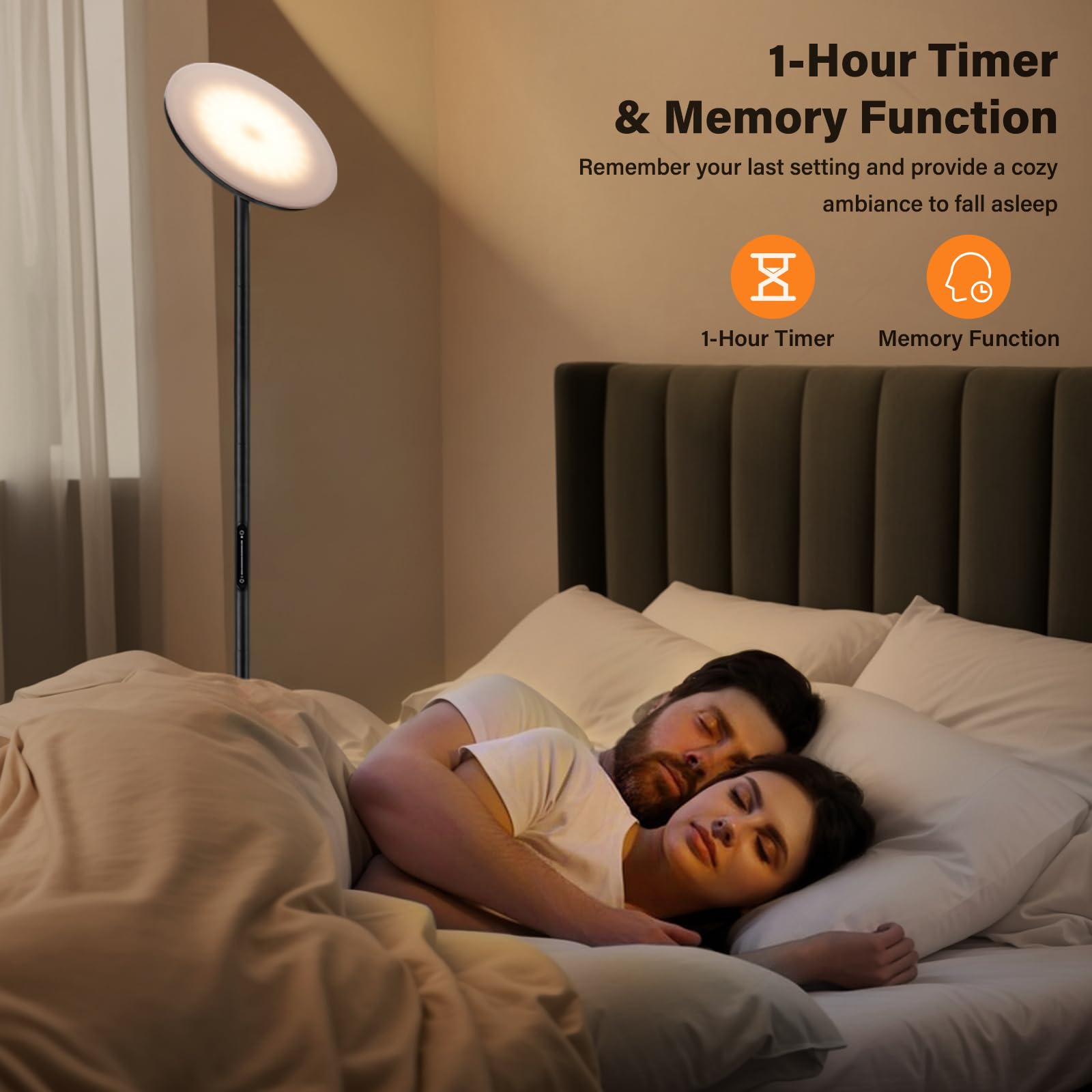 - Duale Steuerung: Passen Sie das Licht bequem über die mitgelieferte Fernbedienung (10 m Reichweite) oder direkt über den dezenten Touch-Schalter am Lampenstab an. Ein praktischer 1-Stunden-Timer ist ebenfalls integriert. (Hinweis: Sollte die Fernbedienung nicht reagieren, lässt sie sich einfach neu koppeln. Drücken Sie dazu innert 3 Sekunden nach dem Einschalten die ON/OFF-Taste, bis die Lampe blinkt.)