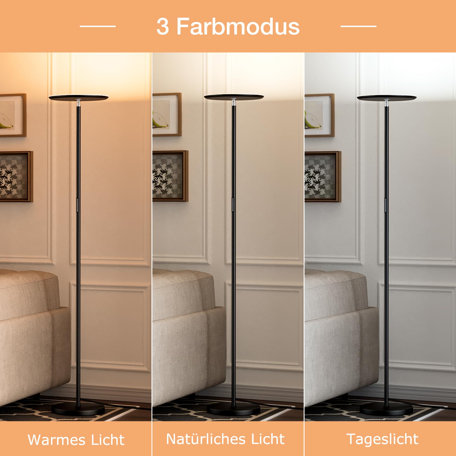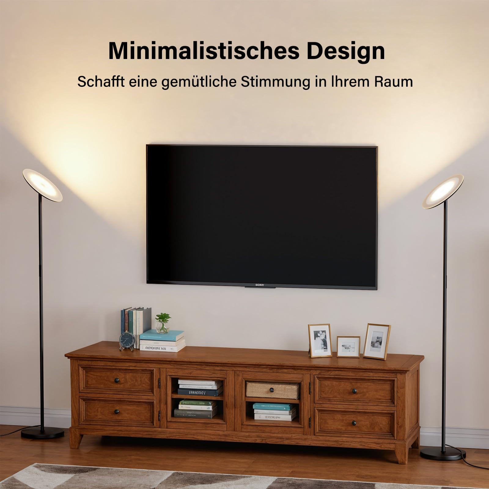 Schaffen Sie in jedem Raum die perfekte Lichtstimmung mit dieser eleganten und vielseitig steuerbaren LED-Stehlampe. Sie kombiniert modernes Design als Deckenfluter mit höchster Funktionalität für Ihr Wohnzimmer, Schlafzimmer oder Büro.