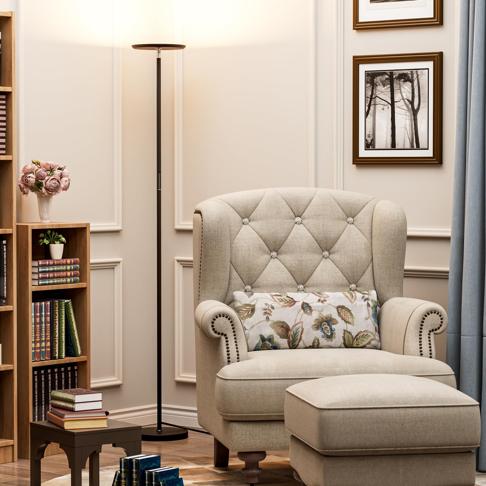 PreeOtti LED Deckenfluter Wohnzimmer Dimmbar mit Fernbedienung - Schwarz