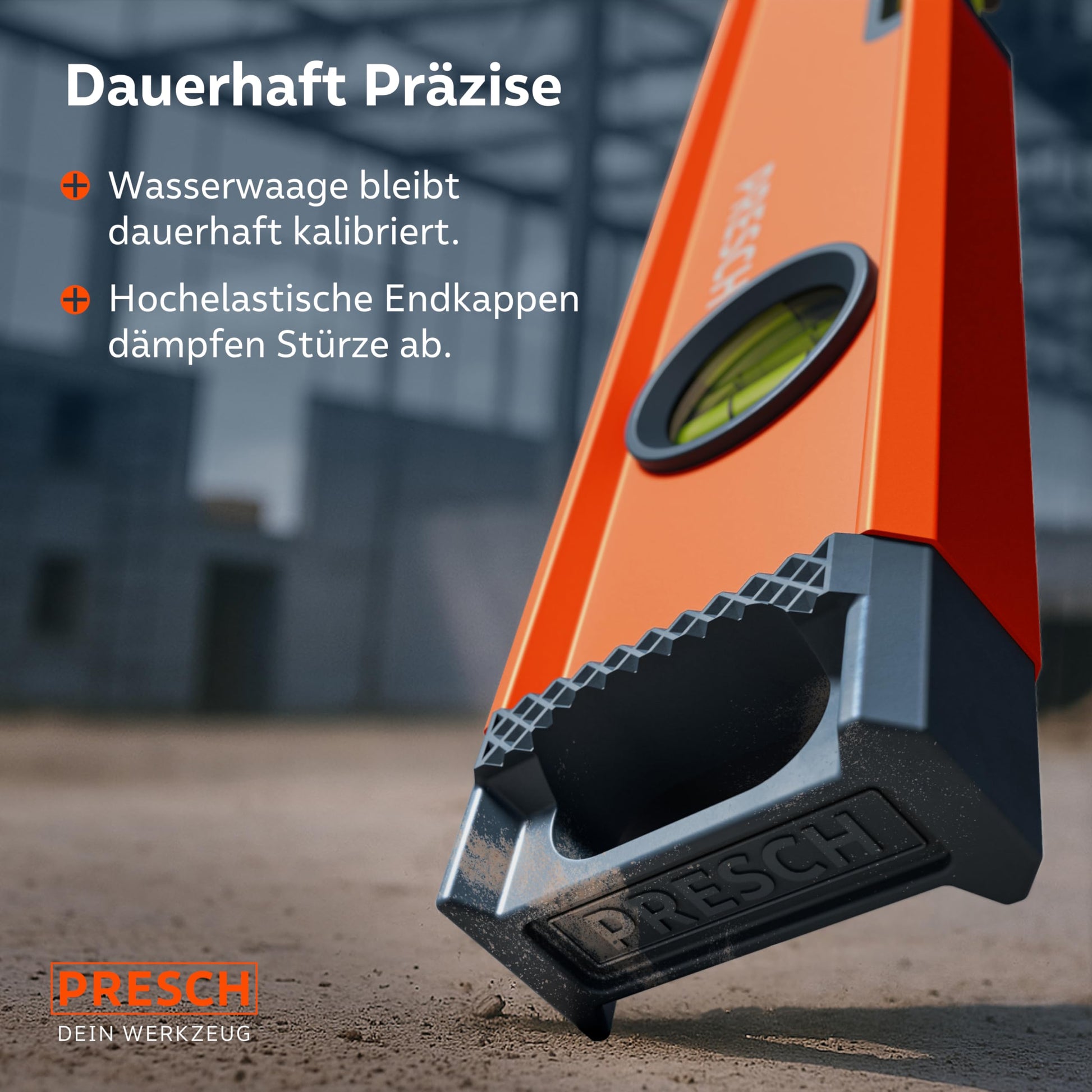 Dieses dreiteilige Wasserwaagen-Set von PRESCH ist der verlässliche Partner für alle Ausrichtungsarbeiten. Es kombiniert hohe Präzision mit durchdachten Funktionen für Profis und anspruchsvolle Heimwerker.